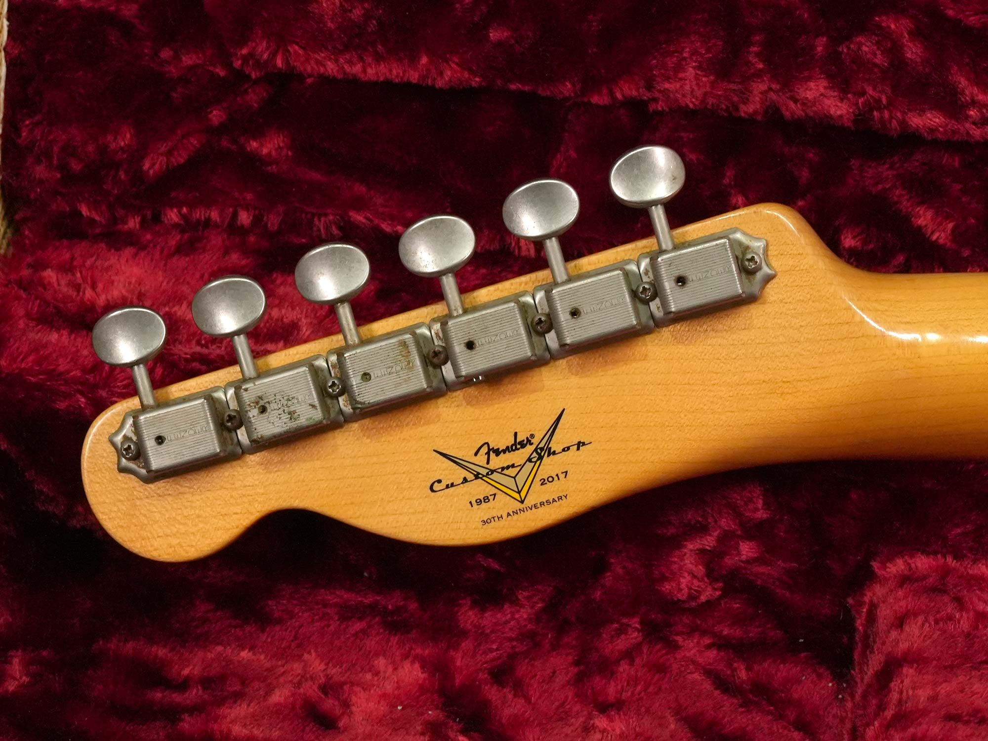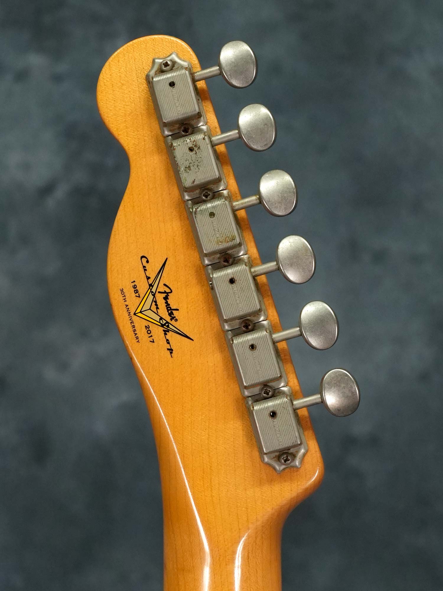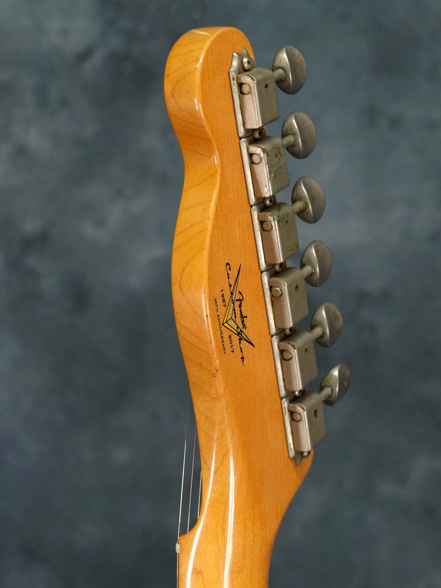 バインディングが巻かれたシンライン・アッシュボディ、1-Pieceメイプルネック、9.5インチの指板ラジアス、シングルラインの6連クルーソンスタイルペグ、ピックアップはフロントにHWサインの入ったハウンドワウンドモデル、リアはブラックガードテレなどで採用されるフラットポールピースのヴィンテージスタイルを搭載。