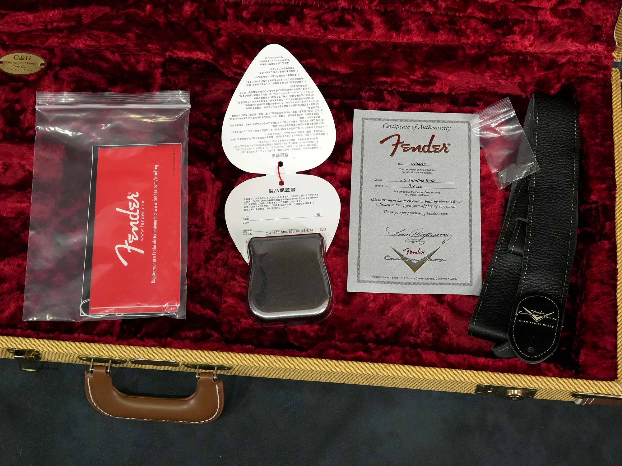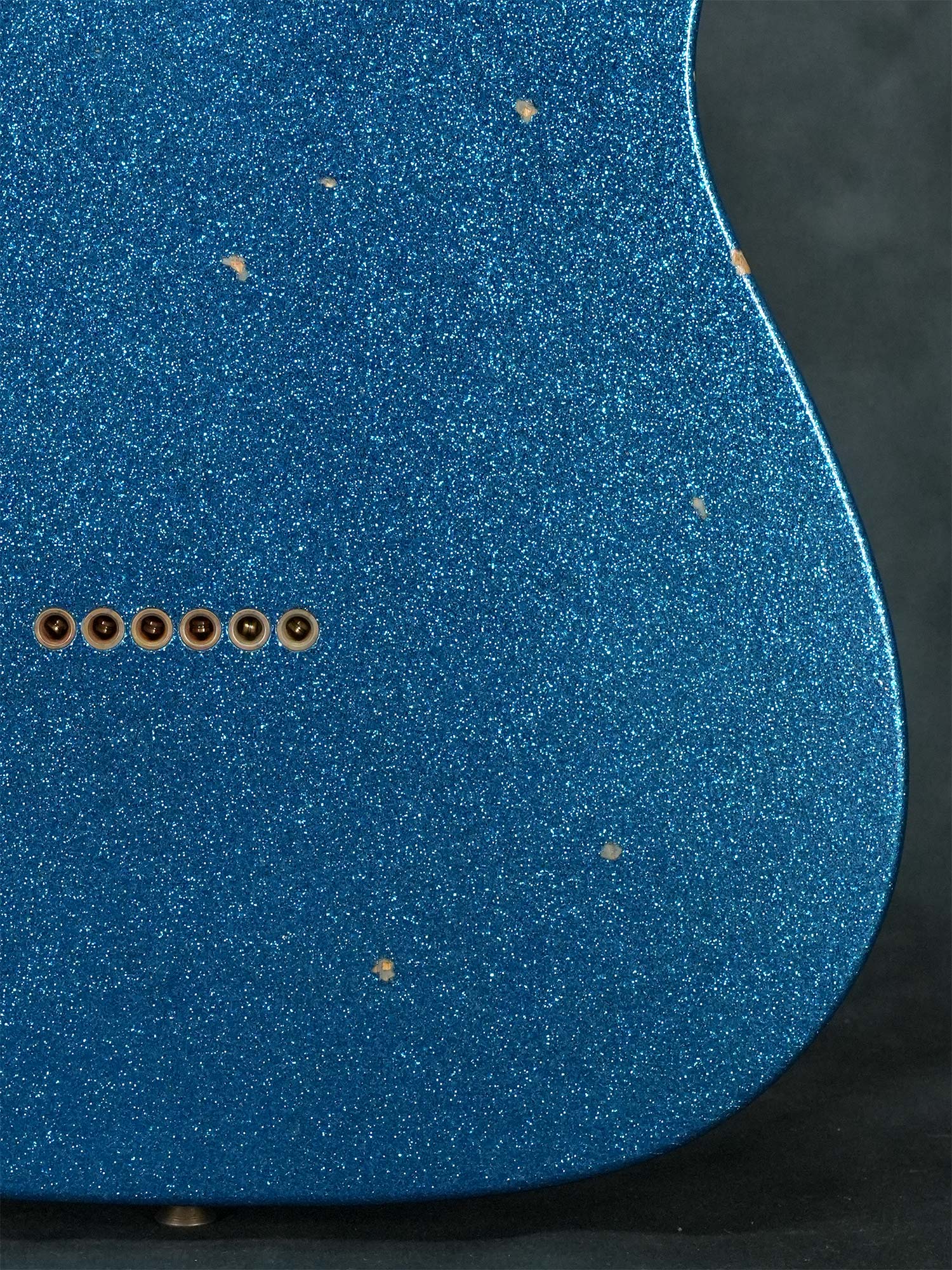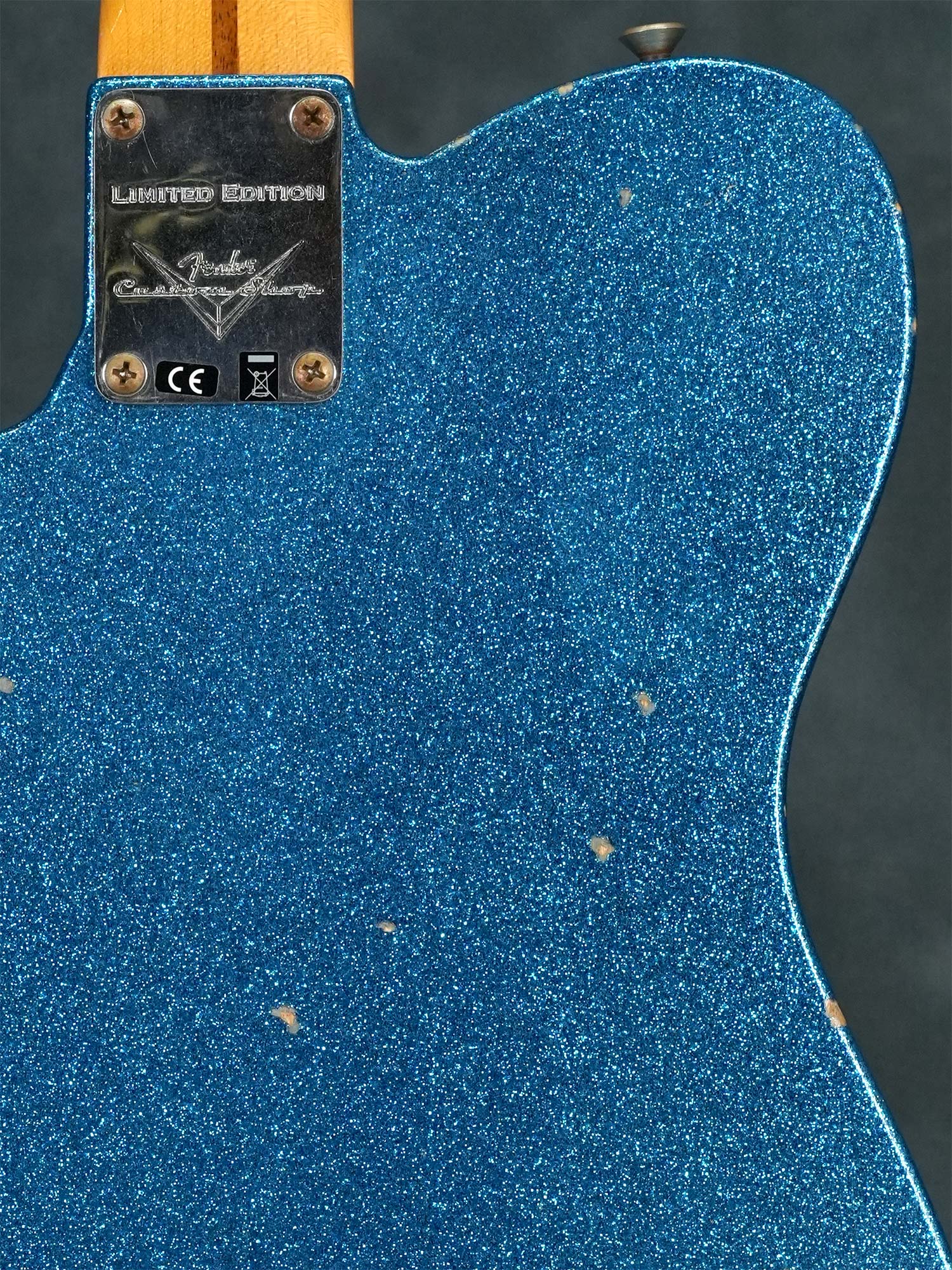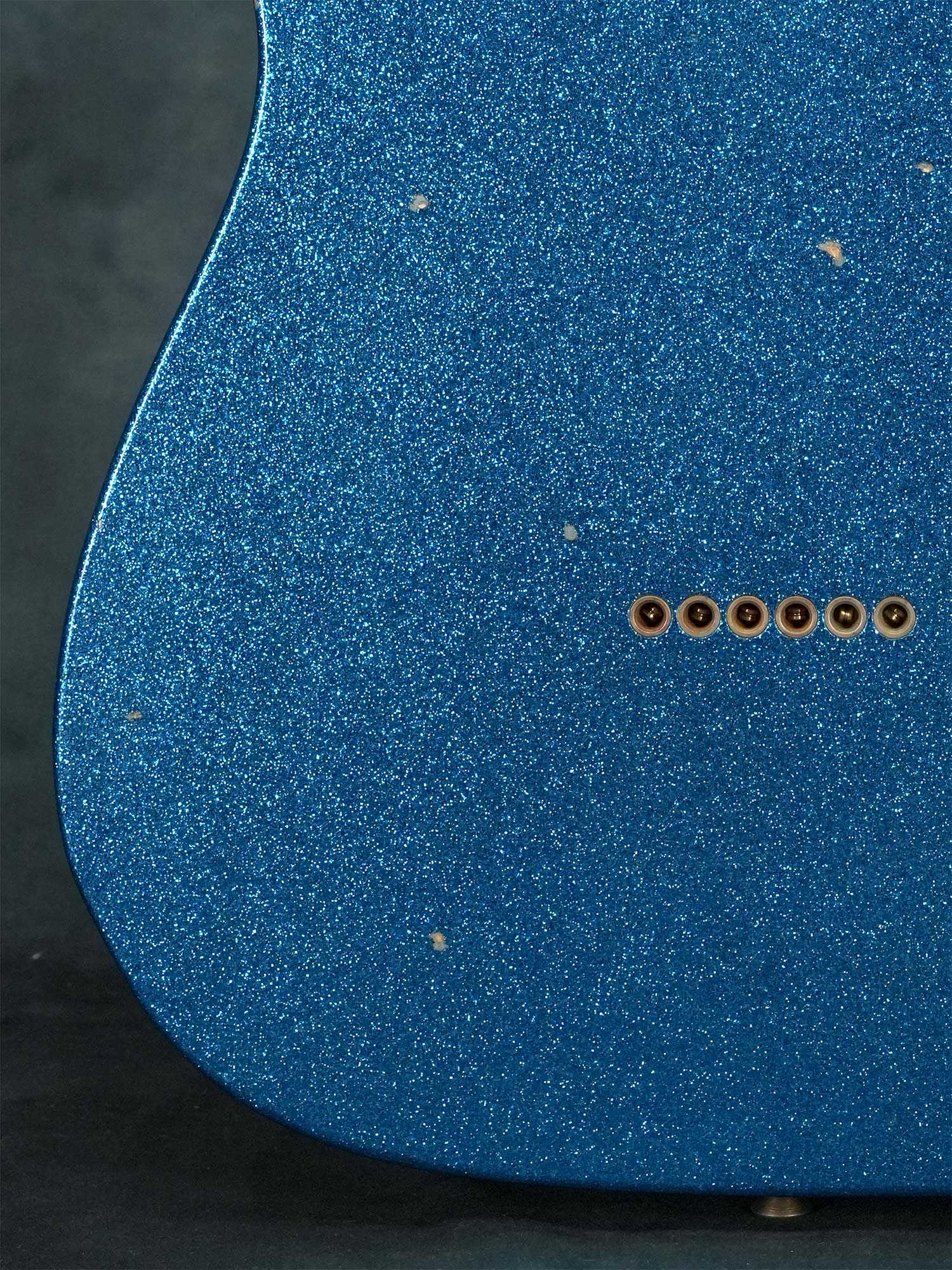 本来は1950年代にも1960年代にも存在しない仕様ながら、(ボディバックのブルースパークルを除いて)個別に見れば実際に存在した特徴的なスペックを合わせる事でどこかクラシックな雰囲気を感じる華やかなデザイン、中空構造かつ軽量なボディによる明るくアコースティックな鳴りが心地よく、限定モデルならではステージで映えるテレキャスターシンラインをお探しの方にオススメの一本です。
