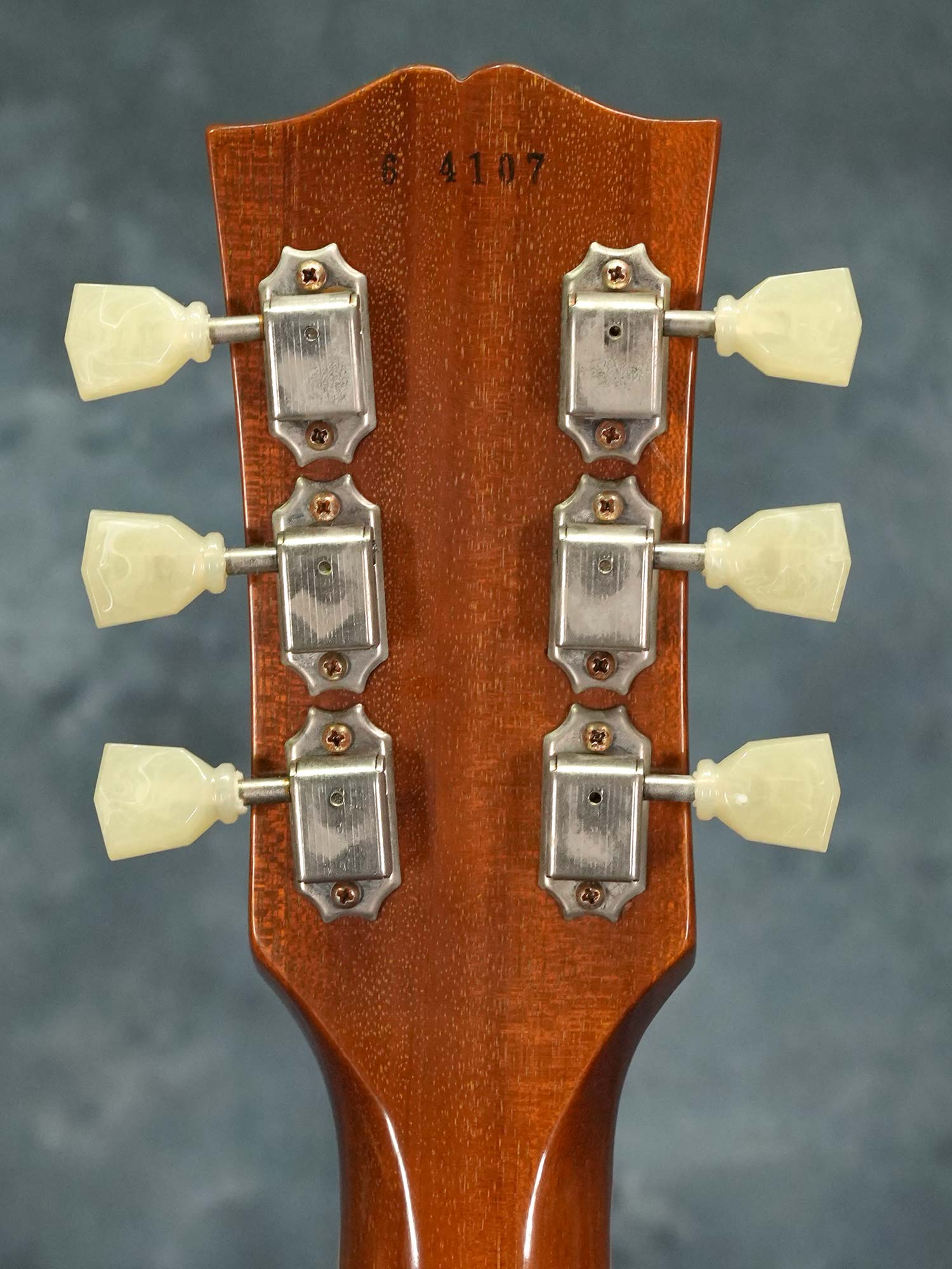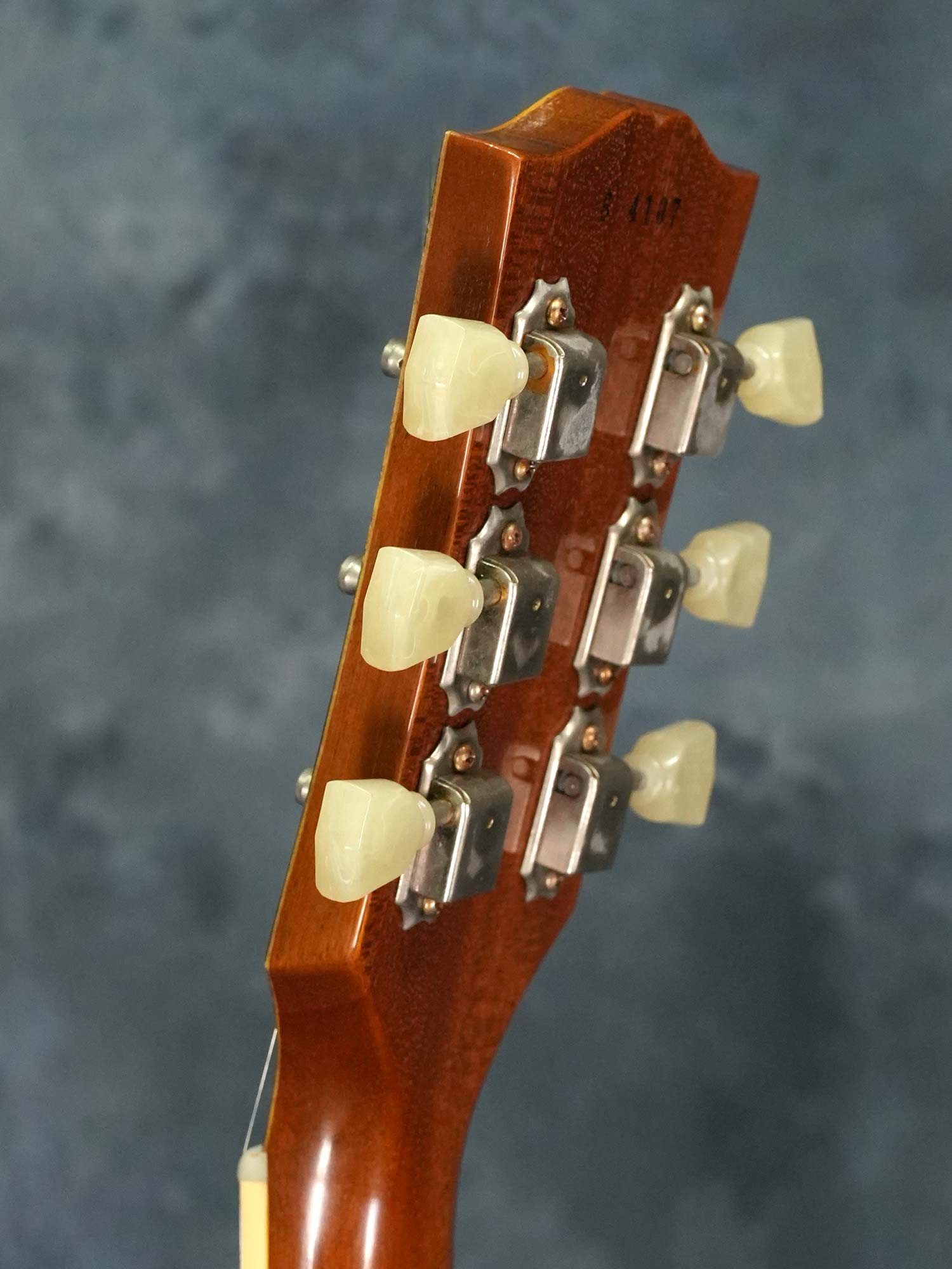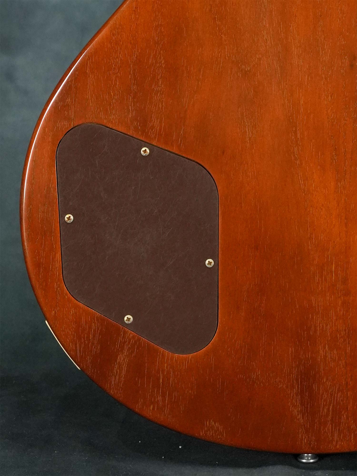新品時よりエイジドハードウェアと半艶消し仕上げのVOSフィニッシュで、ボディトップ下部に米粒大の打痕、ボディバックのエンド付近に塗装剥がれを伴う打痕とボディサイドの左右に何かを押し当てたような塗装の凹みが数か所あり、コントロールノブは4つ全てにひびが入っています。その他には大きな傷などは無く、ピックガード上の弾き傷やボディバックのバックル痕と言った使用感もあまり感じられません。