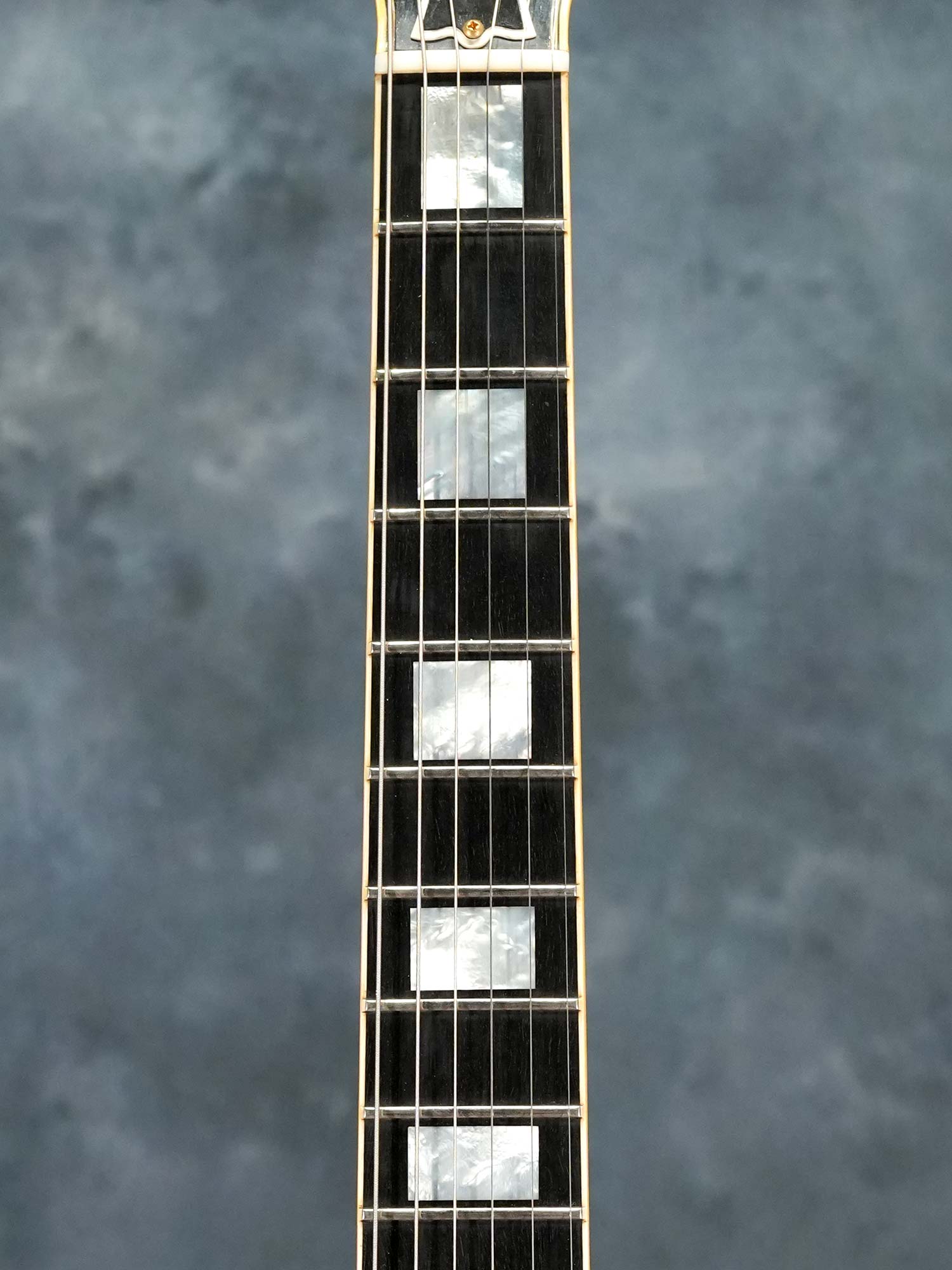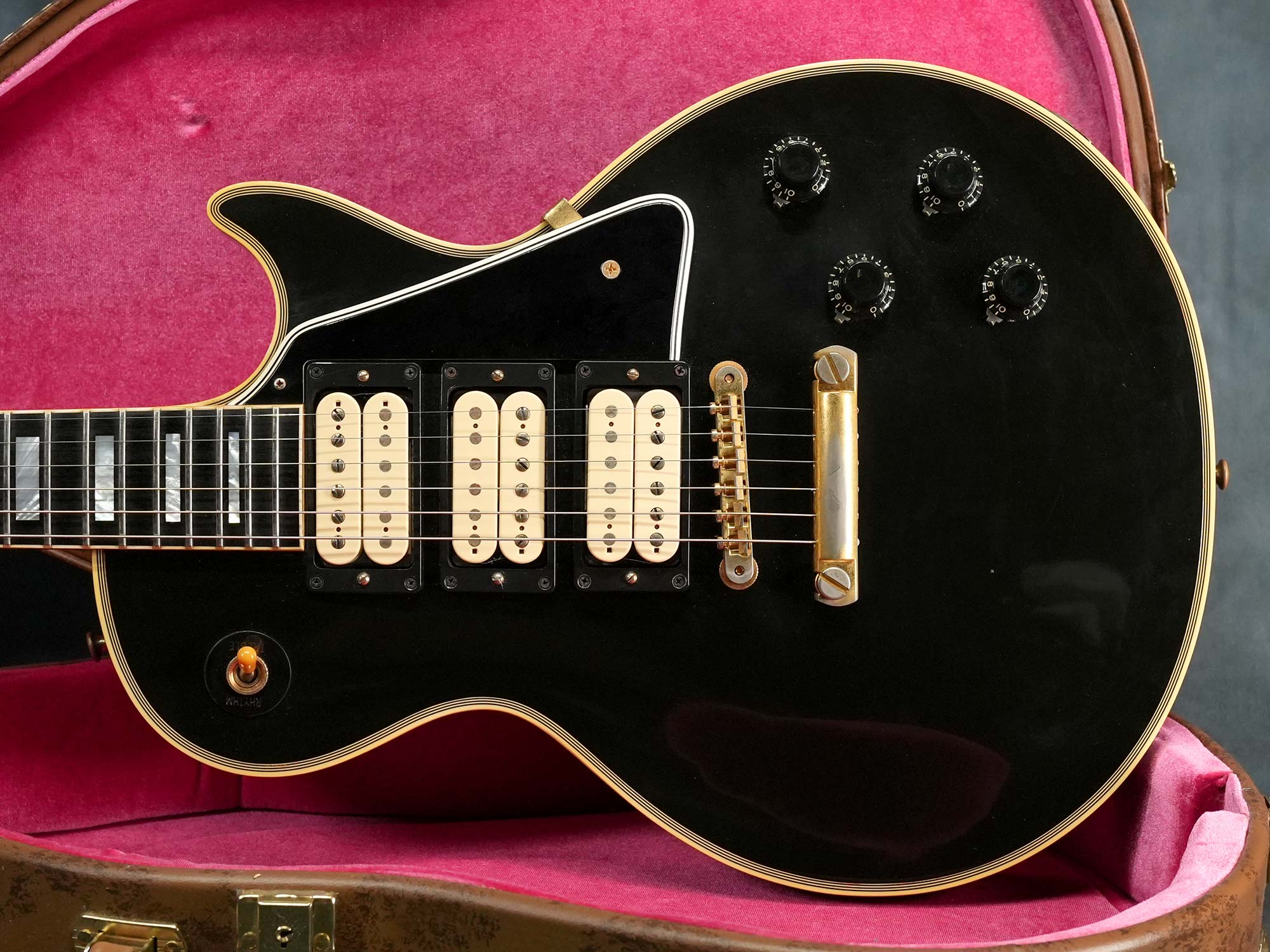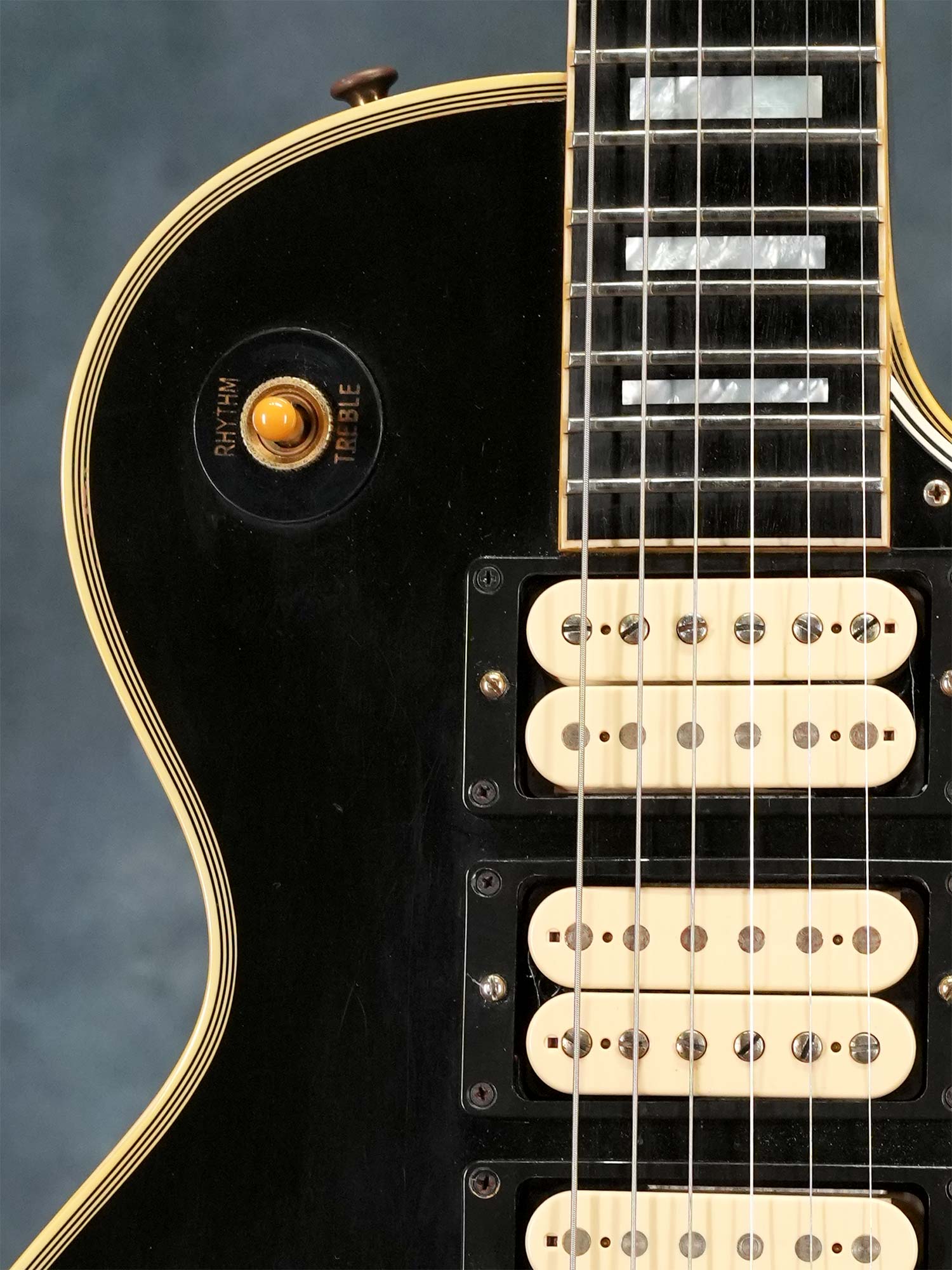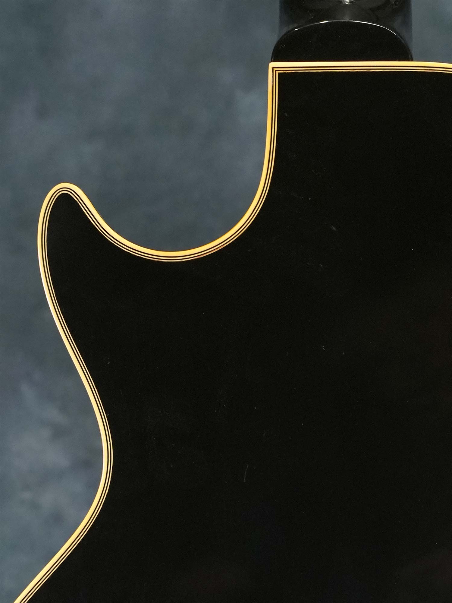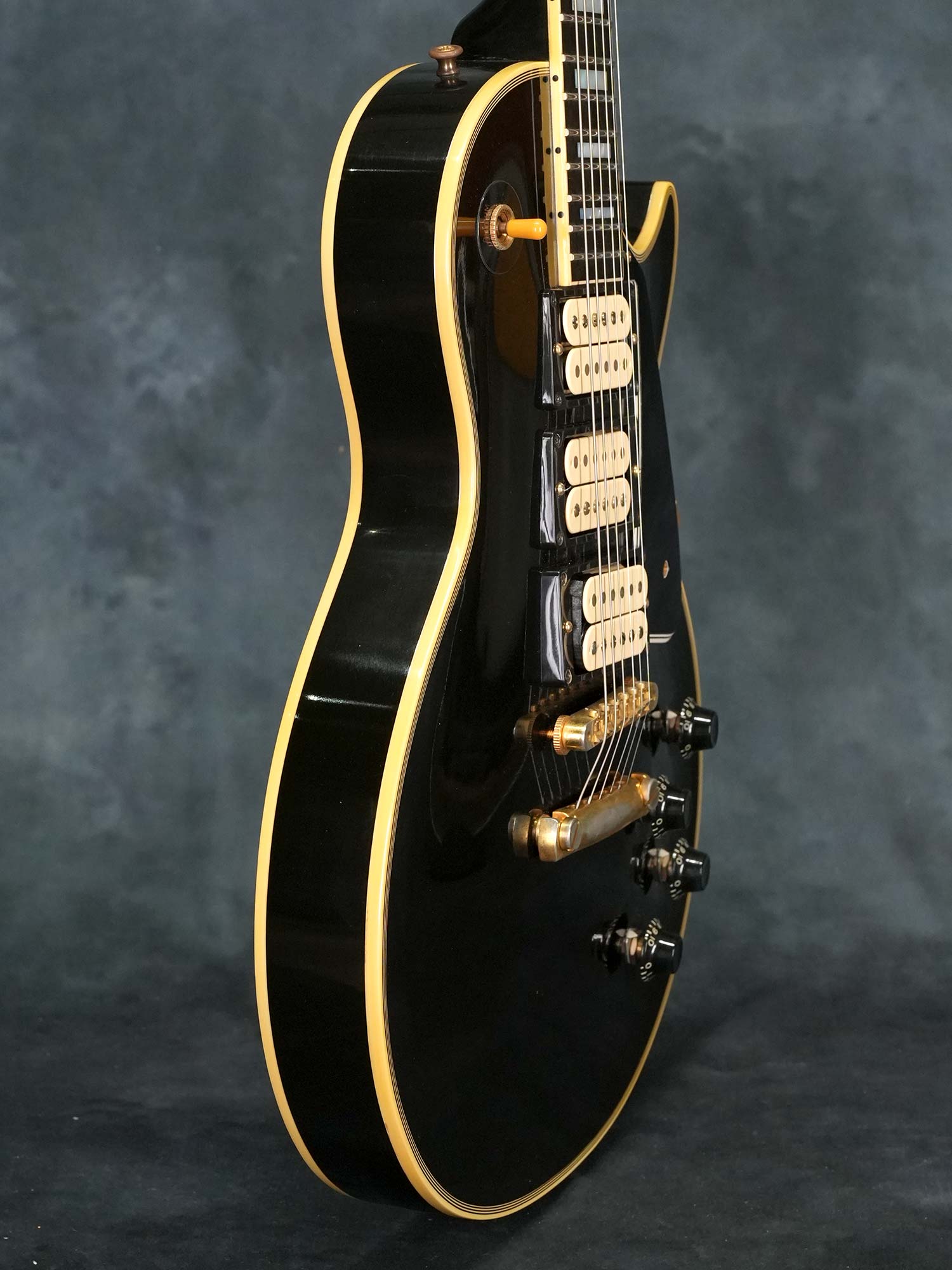 ブラックビューティーにダブルホワイトピックアップ×3のルックス、2PU配線による扱い易さ、ヒストリックモデルならではのアコースティックな響きを残したレスポールサウンドが心地よく、しっかり使える格好良いレスポールカスタムをお探しの方にオススメの一本です。