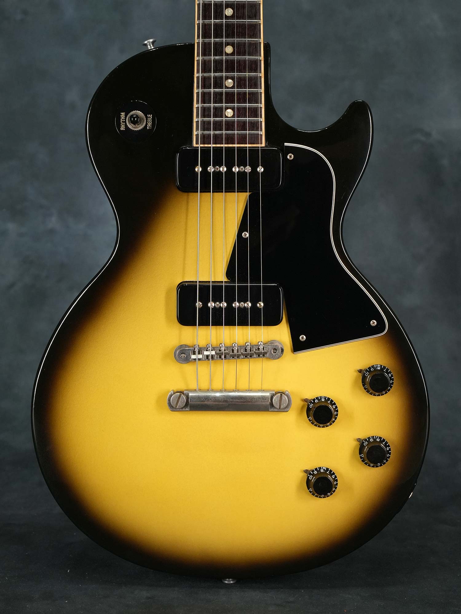 90sらしくLes Paul Specialながら4kg近いウェイト、ローノイズかつやや丸みの有る音色のP-100ピックアップとの組み合わせにより、ハギレがよく明るい音色が心地よく、コンディション良好でしっかり使えるサンバーストのレスポールスペシャルをお探しの方にオススメの一本です。