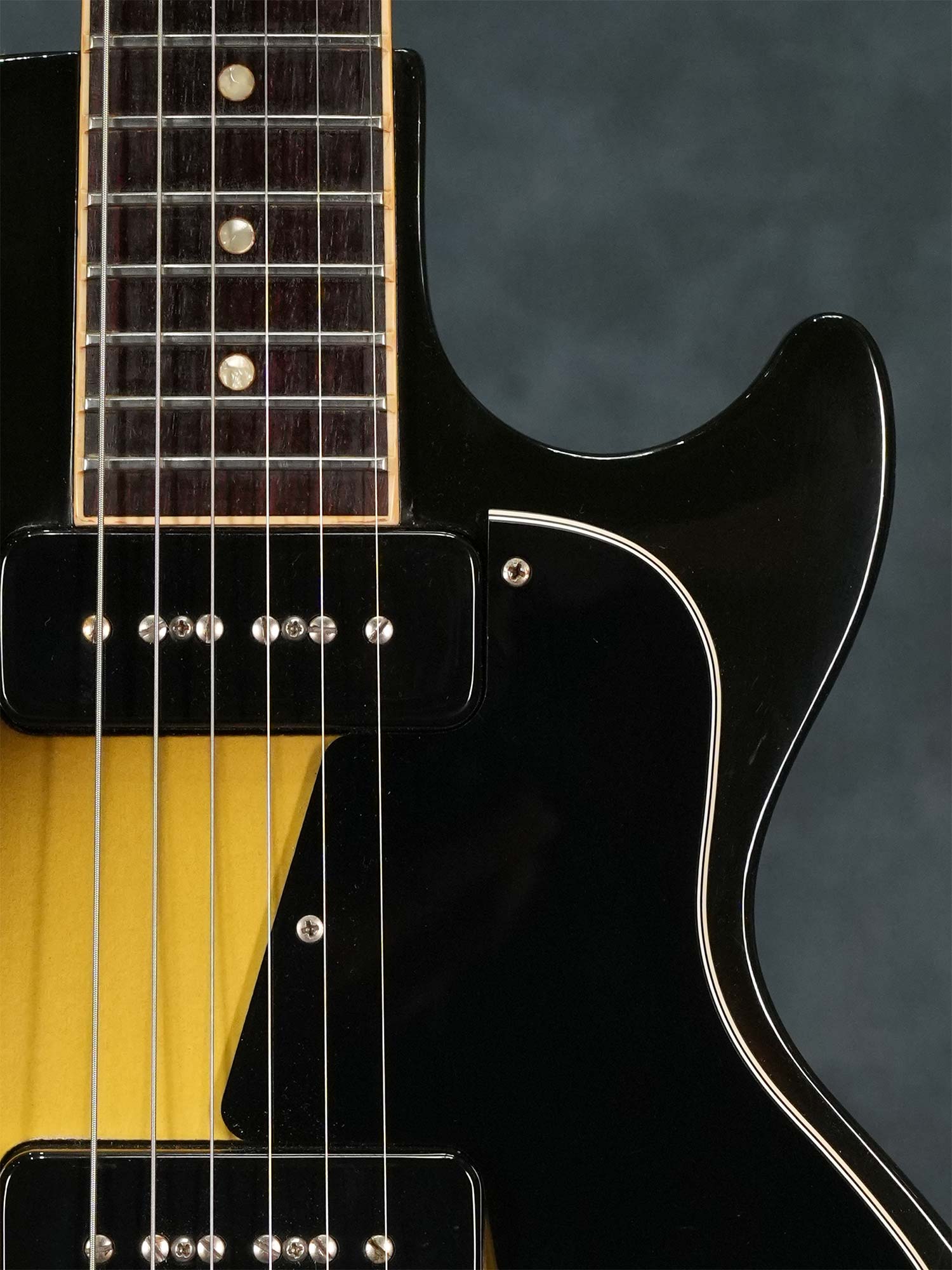 チューンオーマチック&ストップテイルピースにスタックハムバッカーのP-100ピックアップを搭載したGibson Les Paul Special、使用感が少なく素晴らしいコンディションを保った1994年製の中古品です。マホガニーボディ、マホガニーネック、ローズウッド指板、昔ながらのLes Paul Specialではブリッジとテールピースが一体型となったラップアラウンドブリッジが採用されていますが、チューンオーマチックブリッジにストップテイルピースを採用する事でオクターブチューニングの調整が可能になっており、ピックアップはシングルコイルのノイズを改善する為にスタックタイプのハムバッカー構造を採用したP-100をフロント&リアに搭載するなど、クラシックなデザインながらGison流の現代的な仕様が取り入れられています。