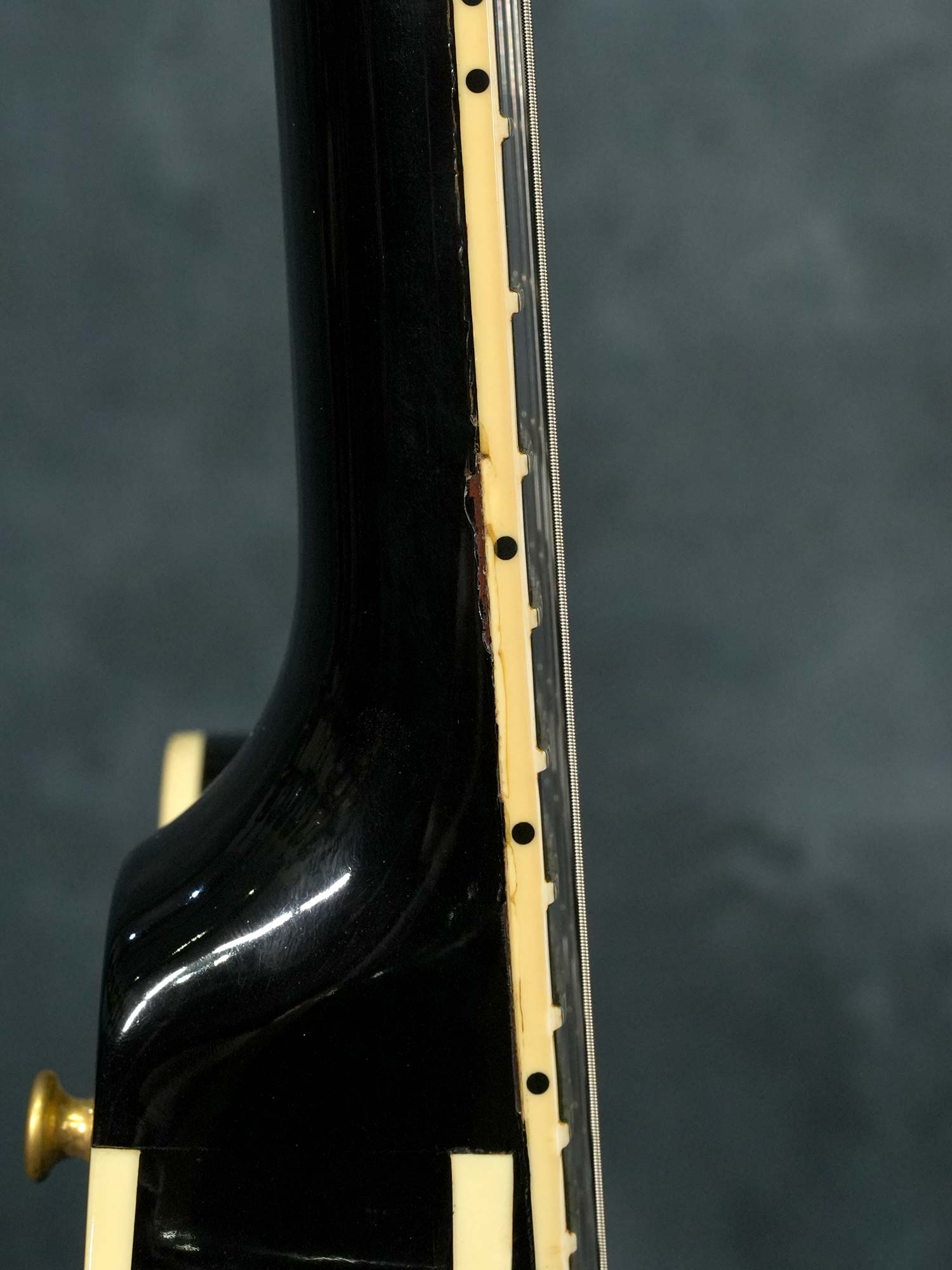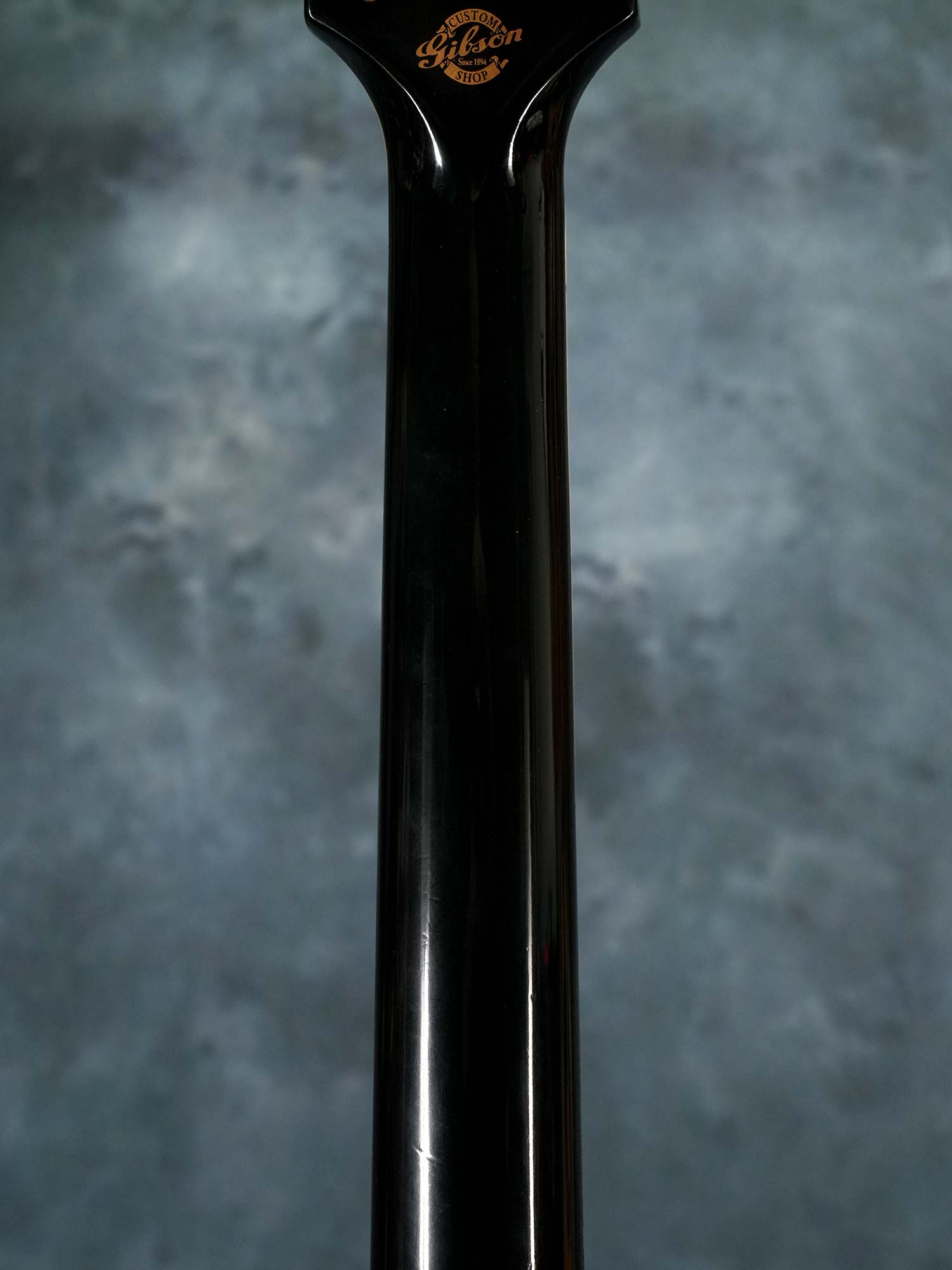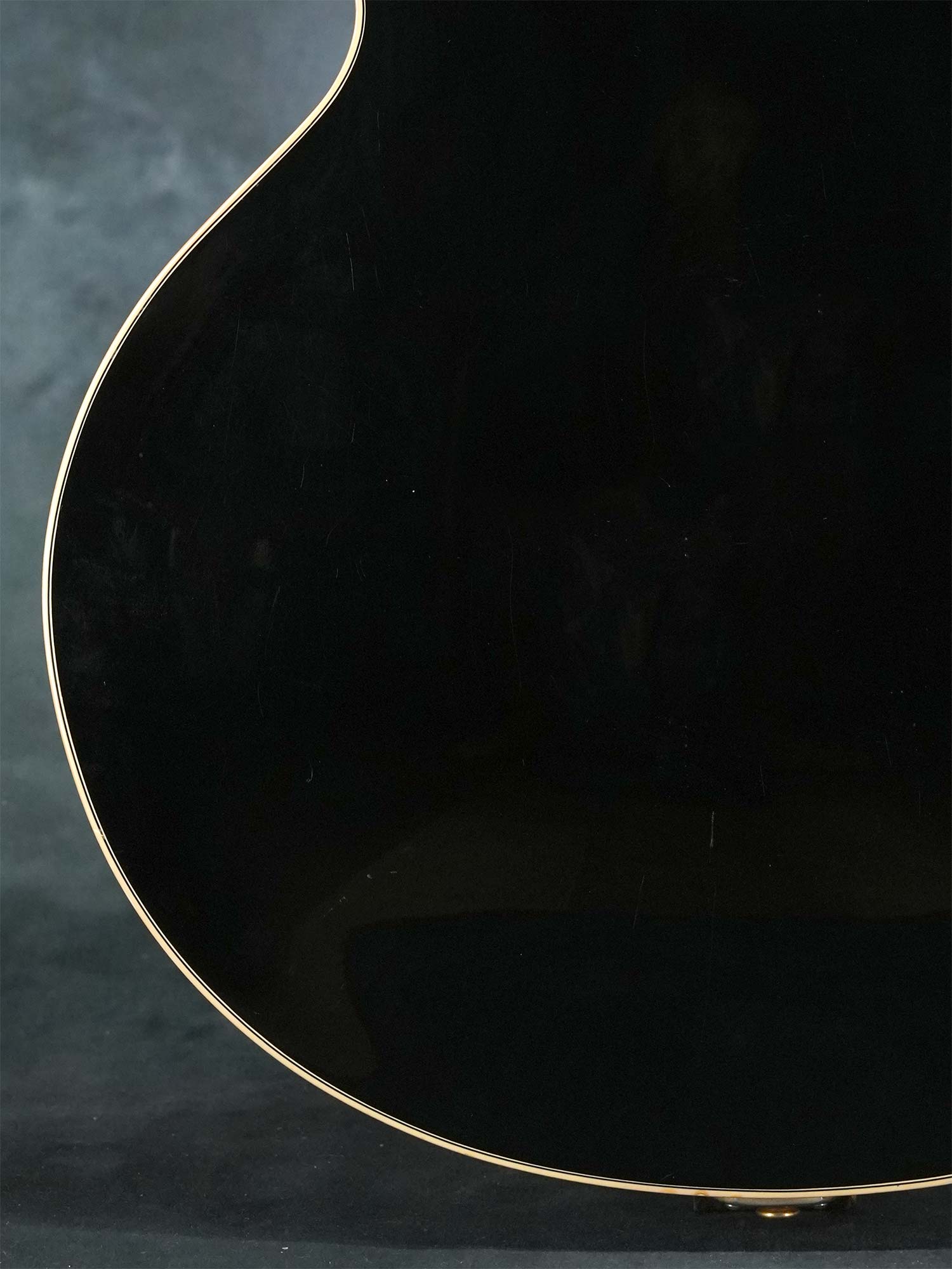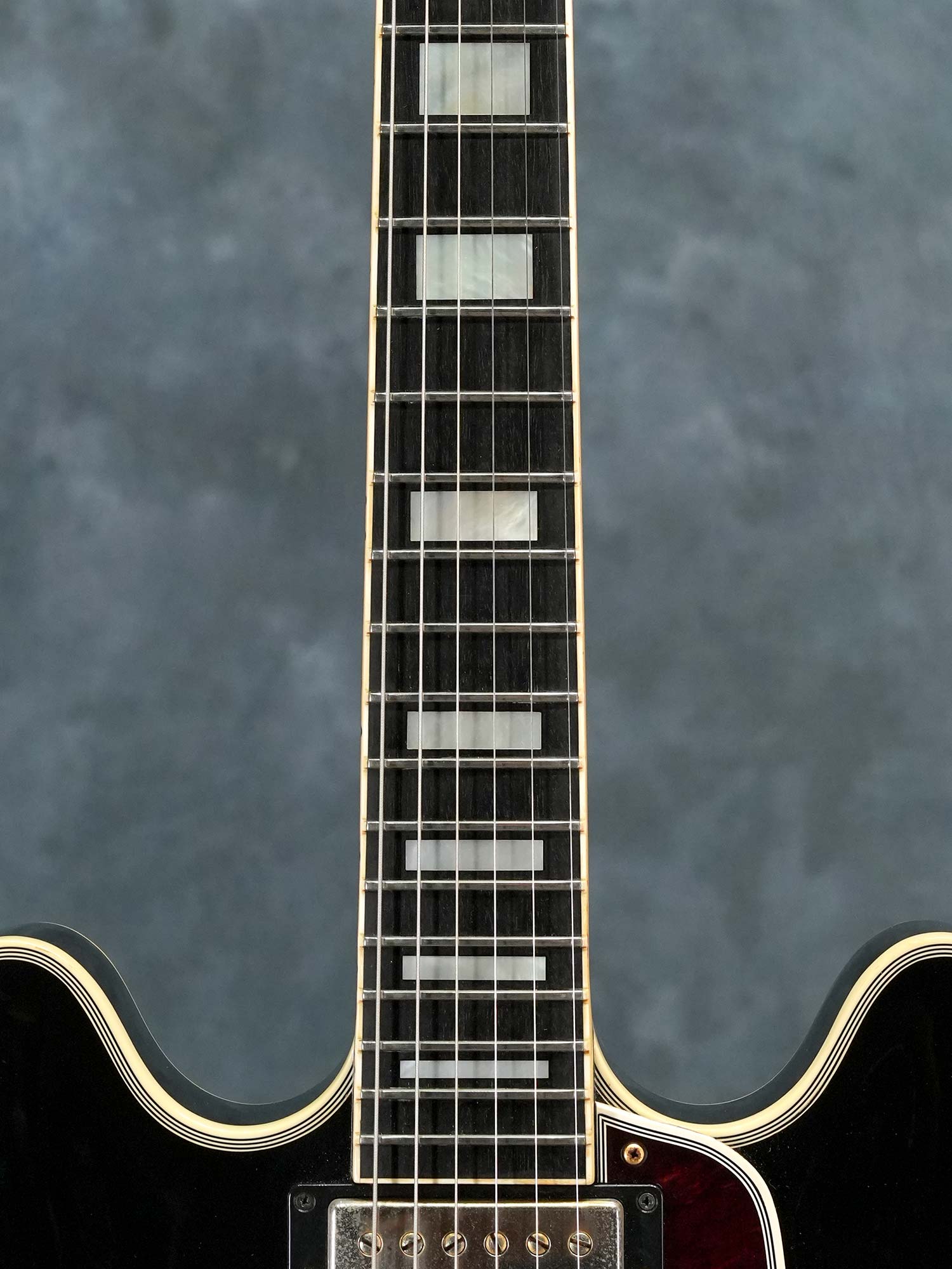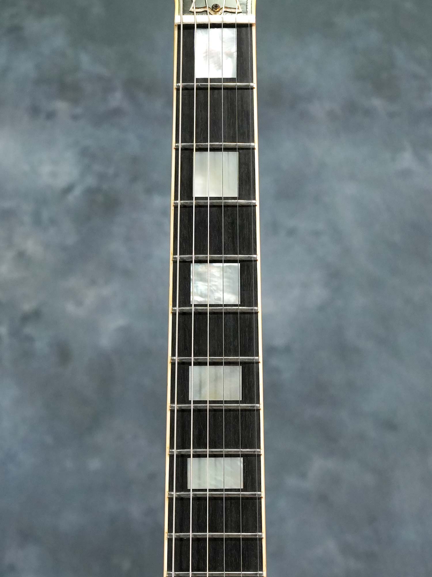 今は無きGibson Memphisファクトリー製で、2011年以降数年間はエボニー材の代替として人口素材のリッチライトが使われる事も多い年代ながら、本器の指板は色濃く木目の詰まったエボニー材が使用されております。