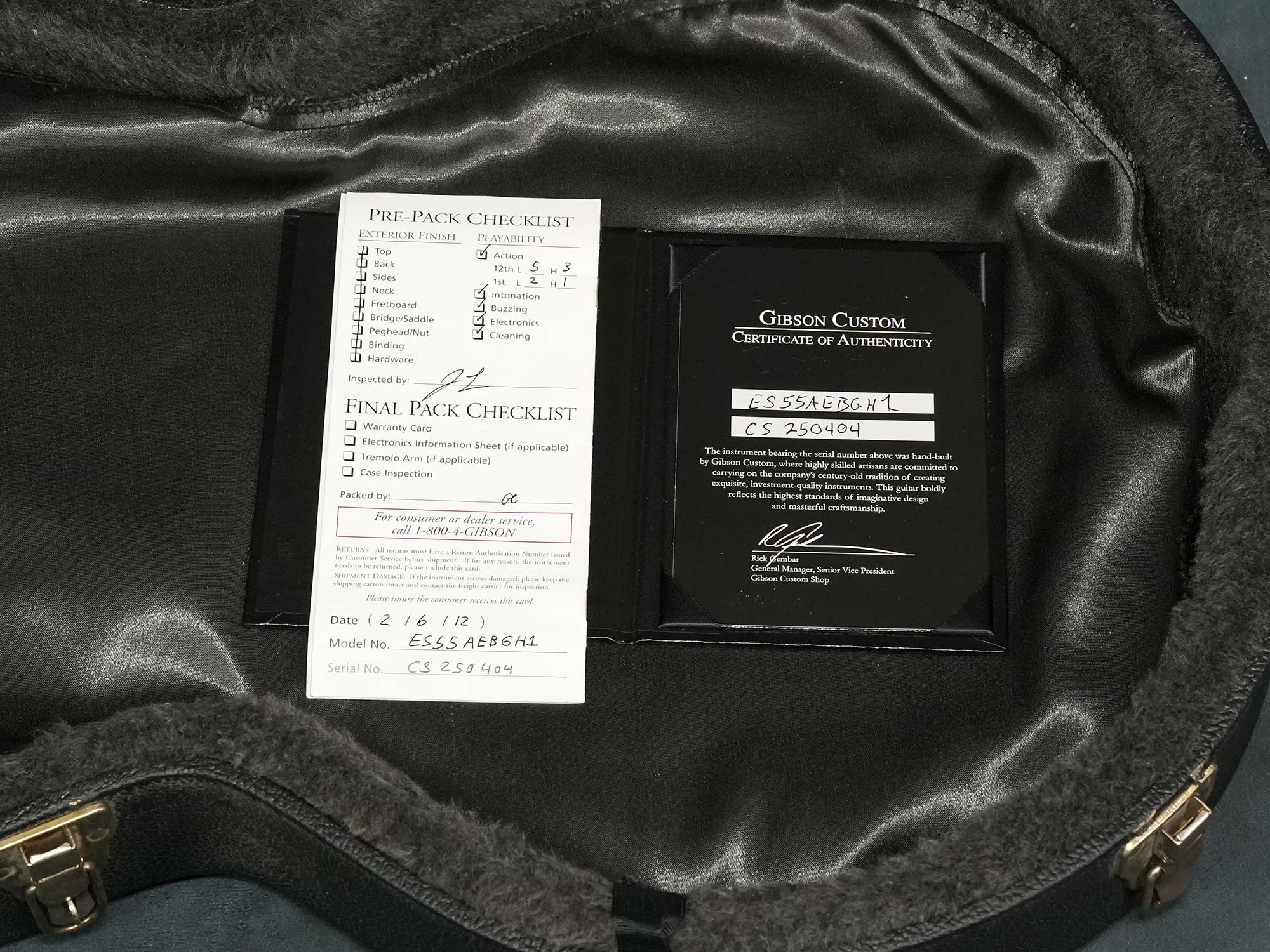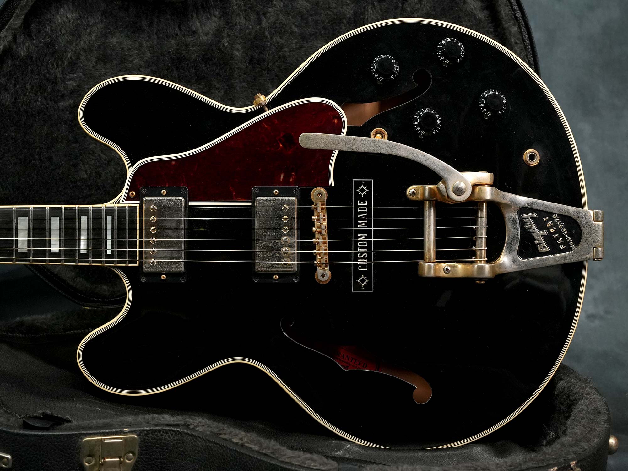 Gibson Memphisファクトリーが独立する以前にCustom Shop名義で発売されていたES-355、BigsbyアームとCUSTOM MADEプレートが後付けされた2012年製の中古品です。