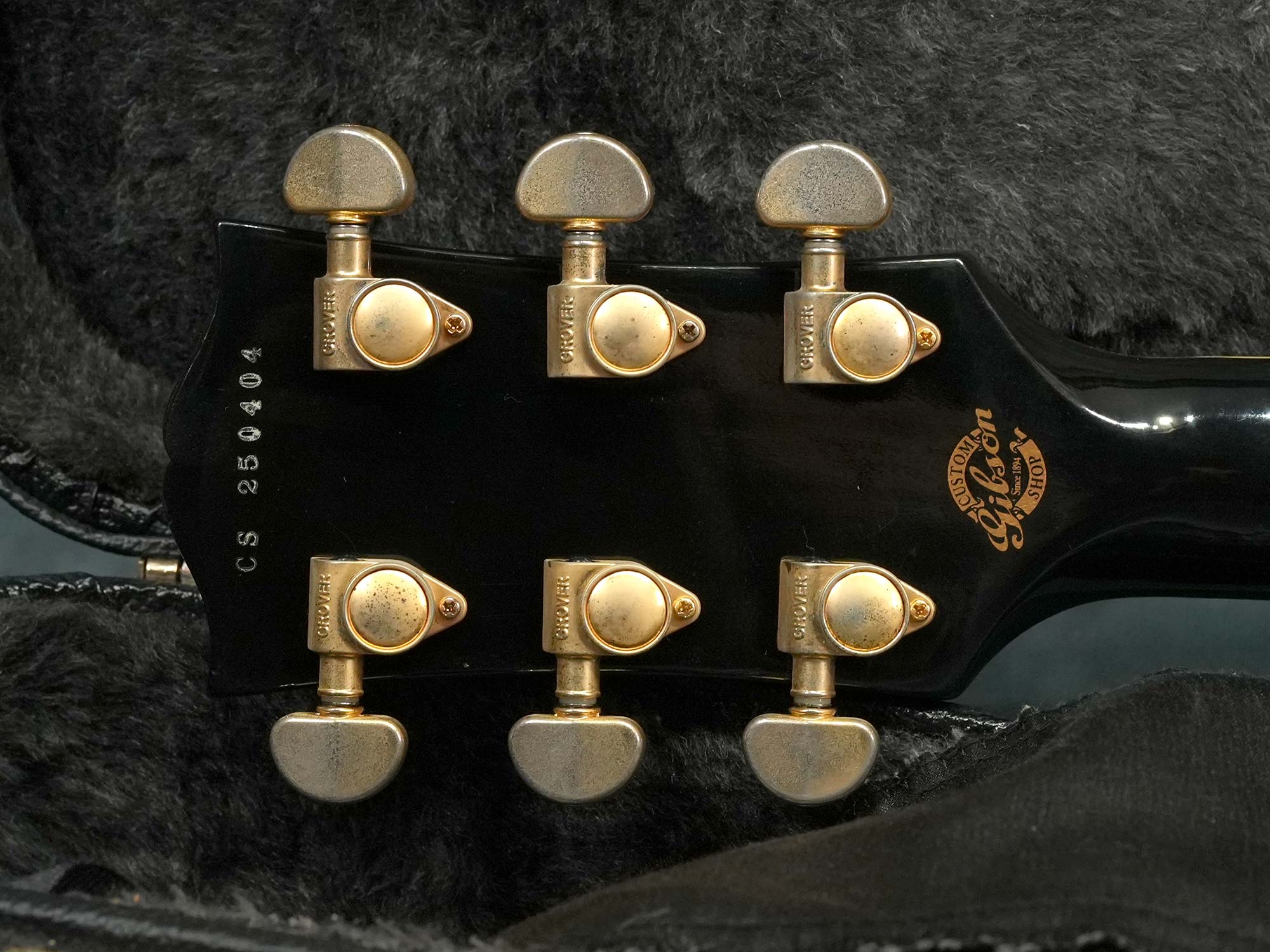 使用&経年によるゴールドハードウェアのメッキ色抜けに加えて、ネック裏10フレット付近に塗装の剥がれを伴う打痕、6弦側15フレット付近の指板バインディングとネックとの境界付近に塗装の剥がれ、その他にも小傷や擦り傷など経年相応の使用感が有ります。