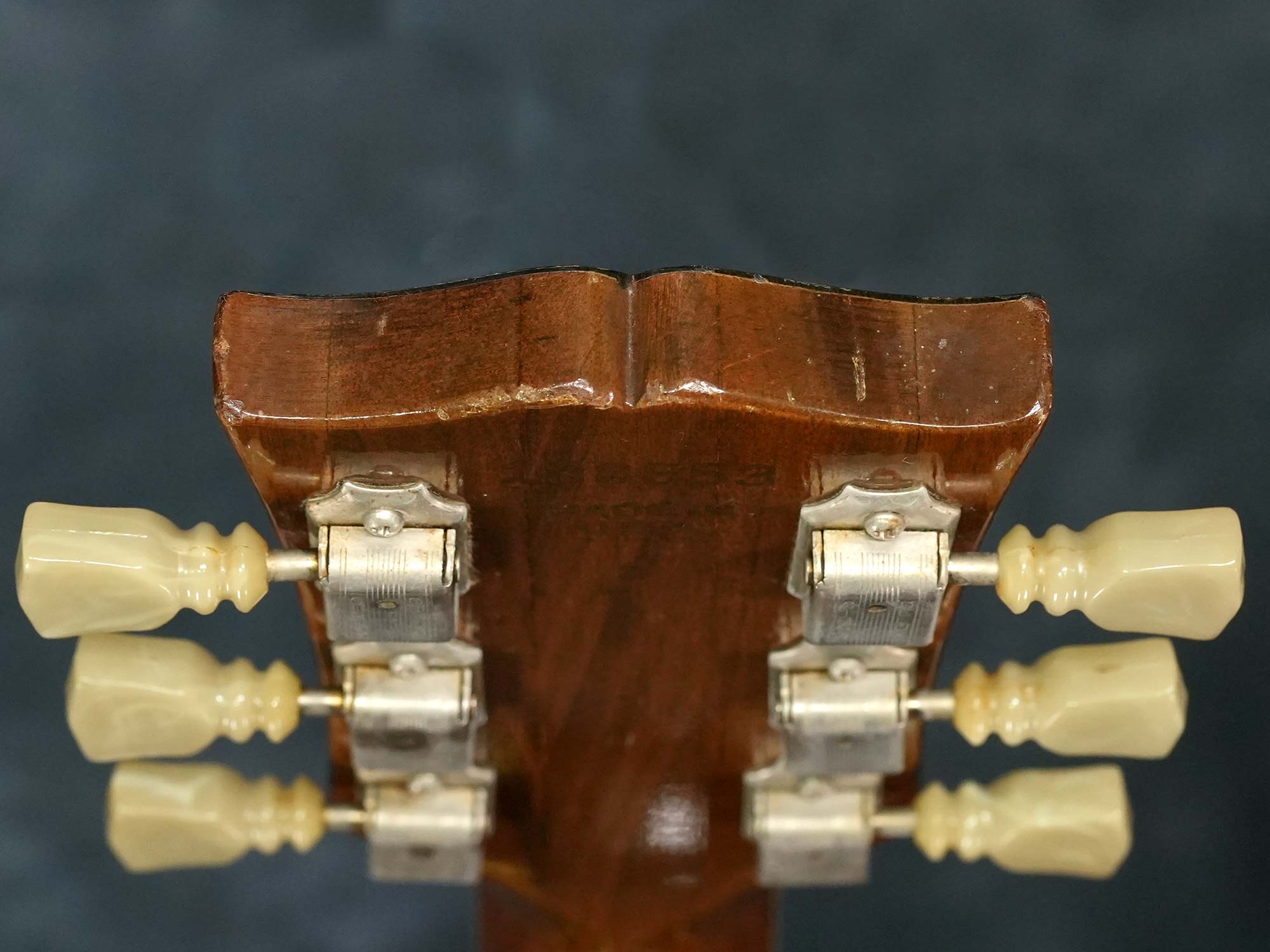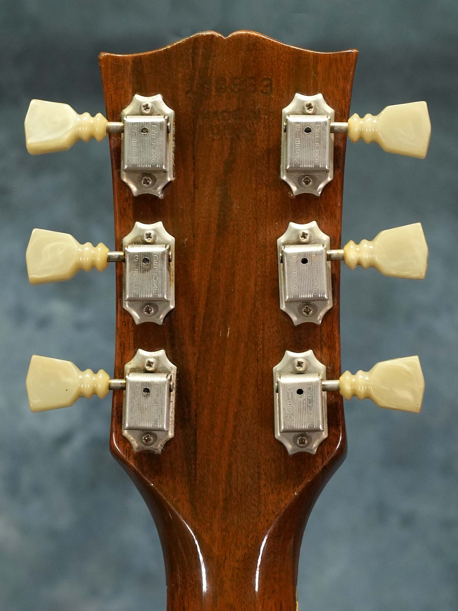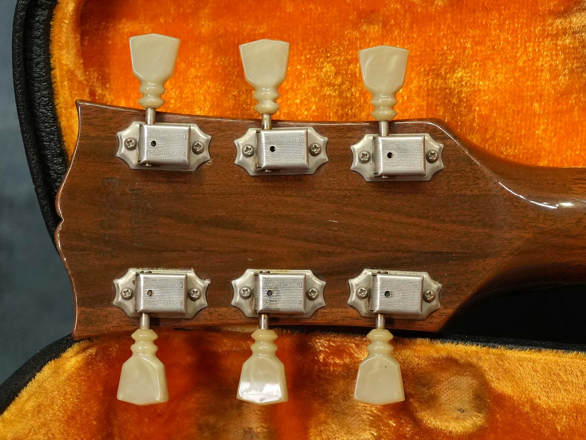 シリアルナンバーレンジは1970年~1975年、ヴォリュートの無い3-Pieceマホガニーネックやナンバーステッカードピックアップ、ピックアップカバーやポット類のハンダを取り外した形跡は無く、ポットにはこの年代に見られるホコリ防止のカバーが取り付けられているため正確な年式を把握する事は出来ませんが、1970年代前期の特徴的な仕様を備えています。