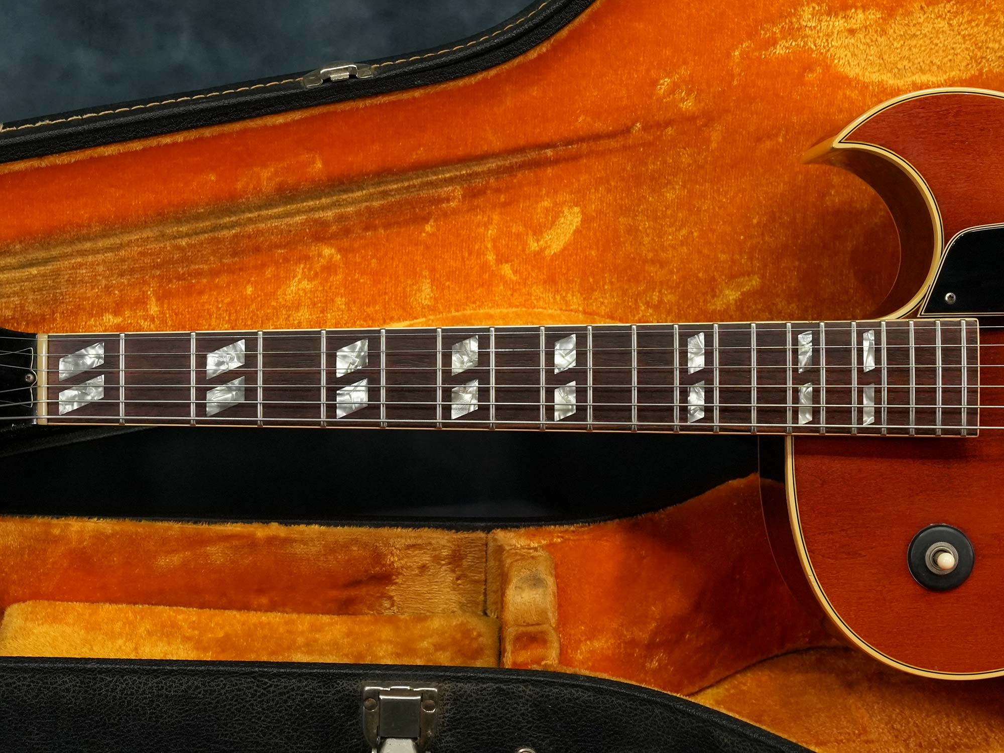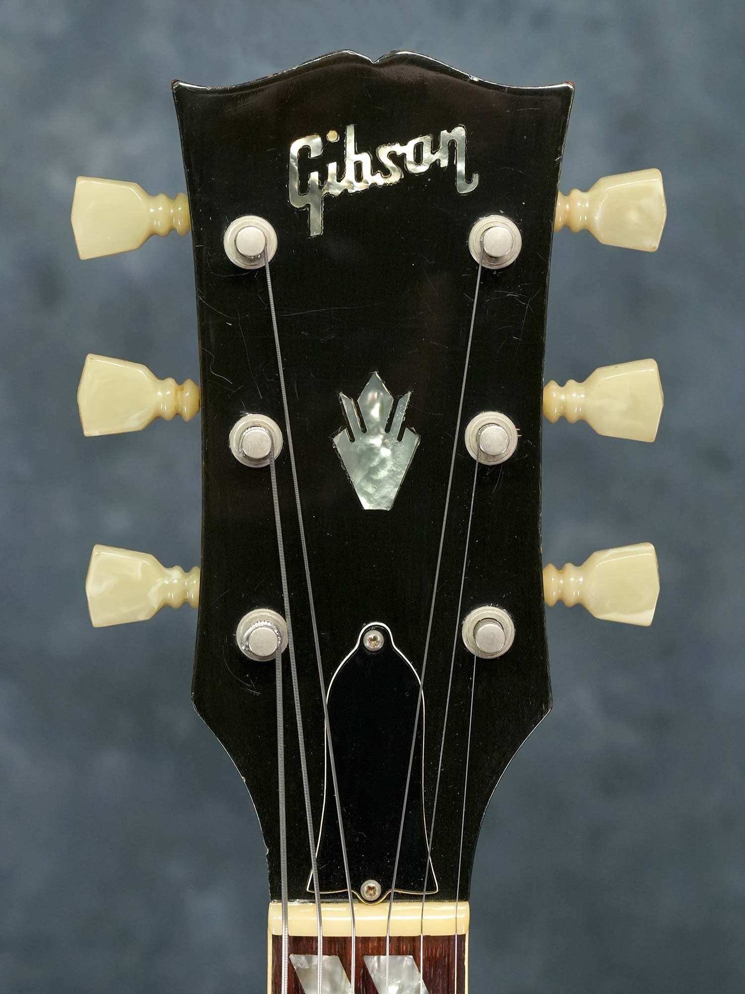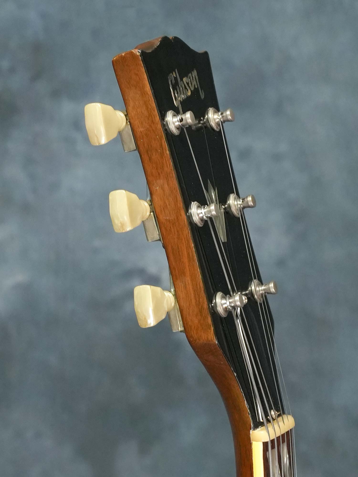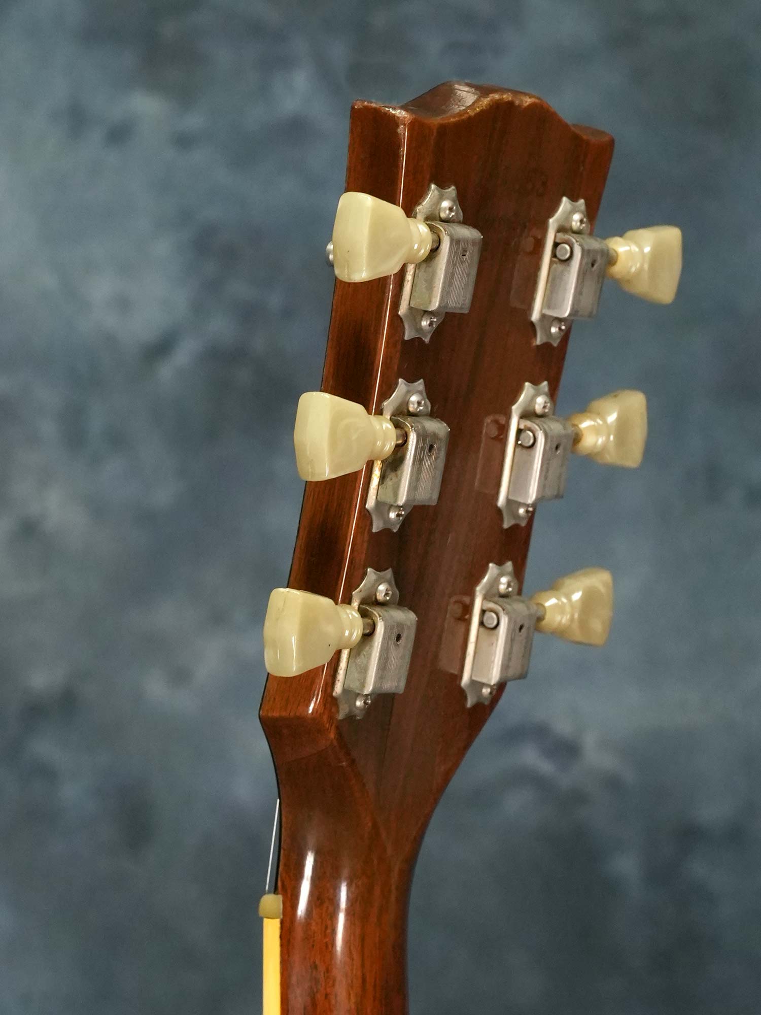 シリアルナンバーレンジは1970年~1975年、ヴォリュートの無い3-Pieceマホガニーネックやナンバーステッカードピックアップ、ピックアップカバーやポット類のハンダを取り外した形跡は無く、ポットにはこの年代に見られるホコリ防止のカバーが取り付けられているため正確な年式を把握する事は出来ませんが、1970年代前期の特徴的な仕様を備えています。