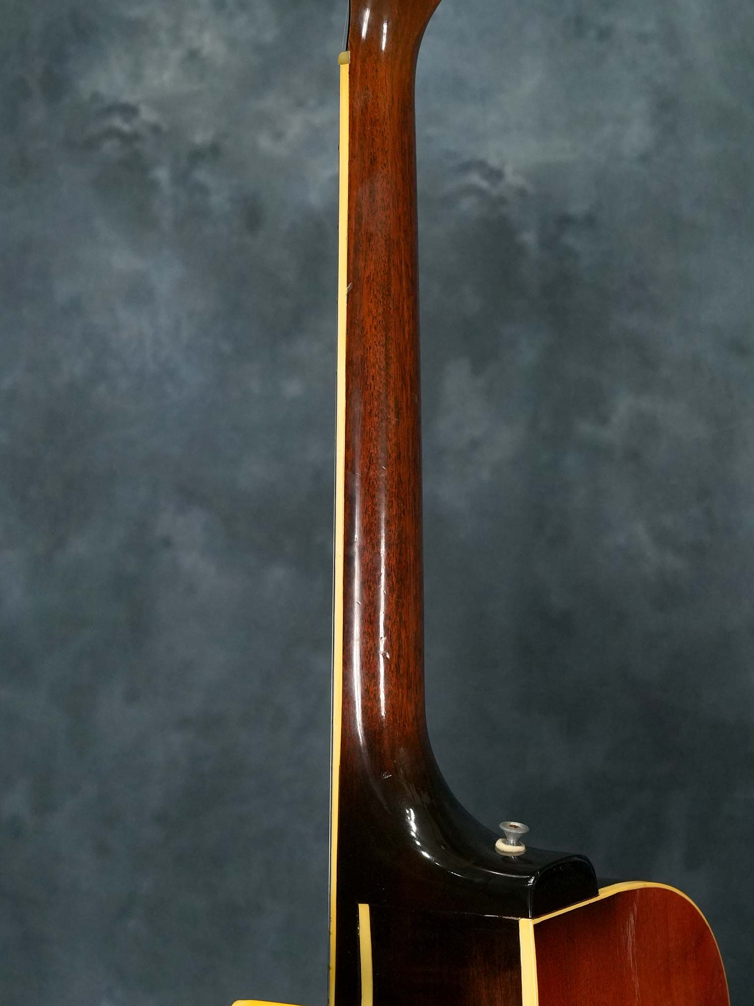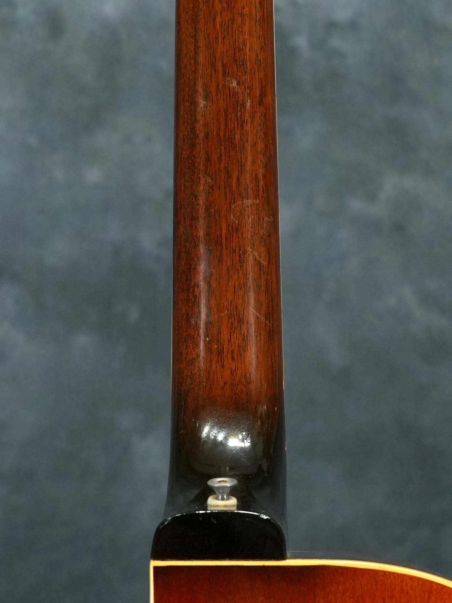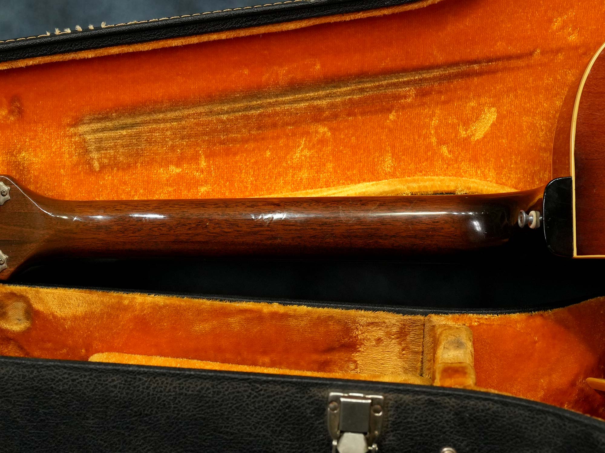 うっすらと全体に入ったウェザーチェックに加えて、所々弾き傷や擦り傷と言った使用感、6弦側12フレット付近ネック裏の塗装剥がれなどはあるものの、割れ/剥がれと言った木部まで達するような大きなダメージは無く、既に製造から半世紀以上が経過している事を考えれば比較的綺麗な状態を保っています。