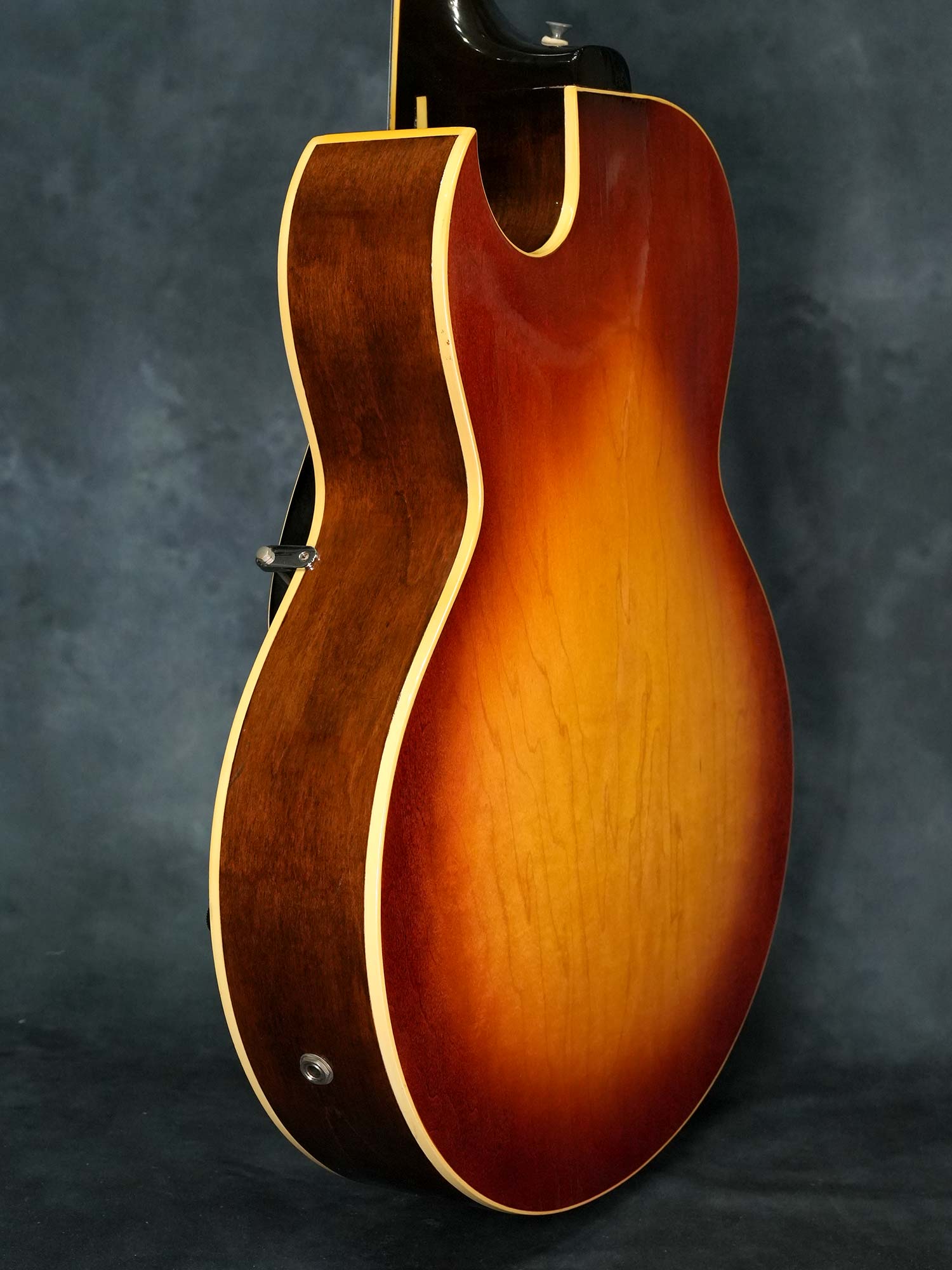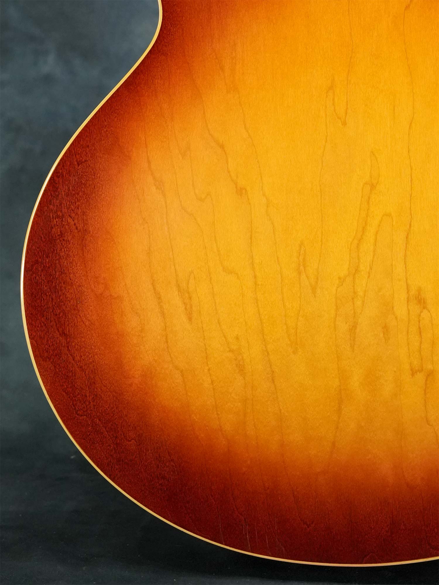 適度にスッキリとしながら枯れたアコースティック感の有るフルアコサウンドが心地よく、外観&演奏性も良好でしっかり使える上質なフルアコースティックギターをお探しの方にオススメの一本です。