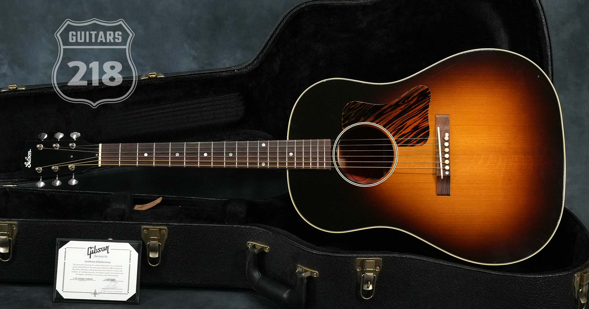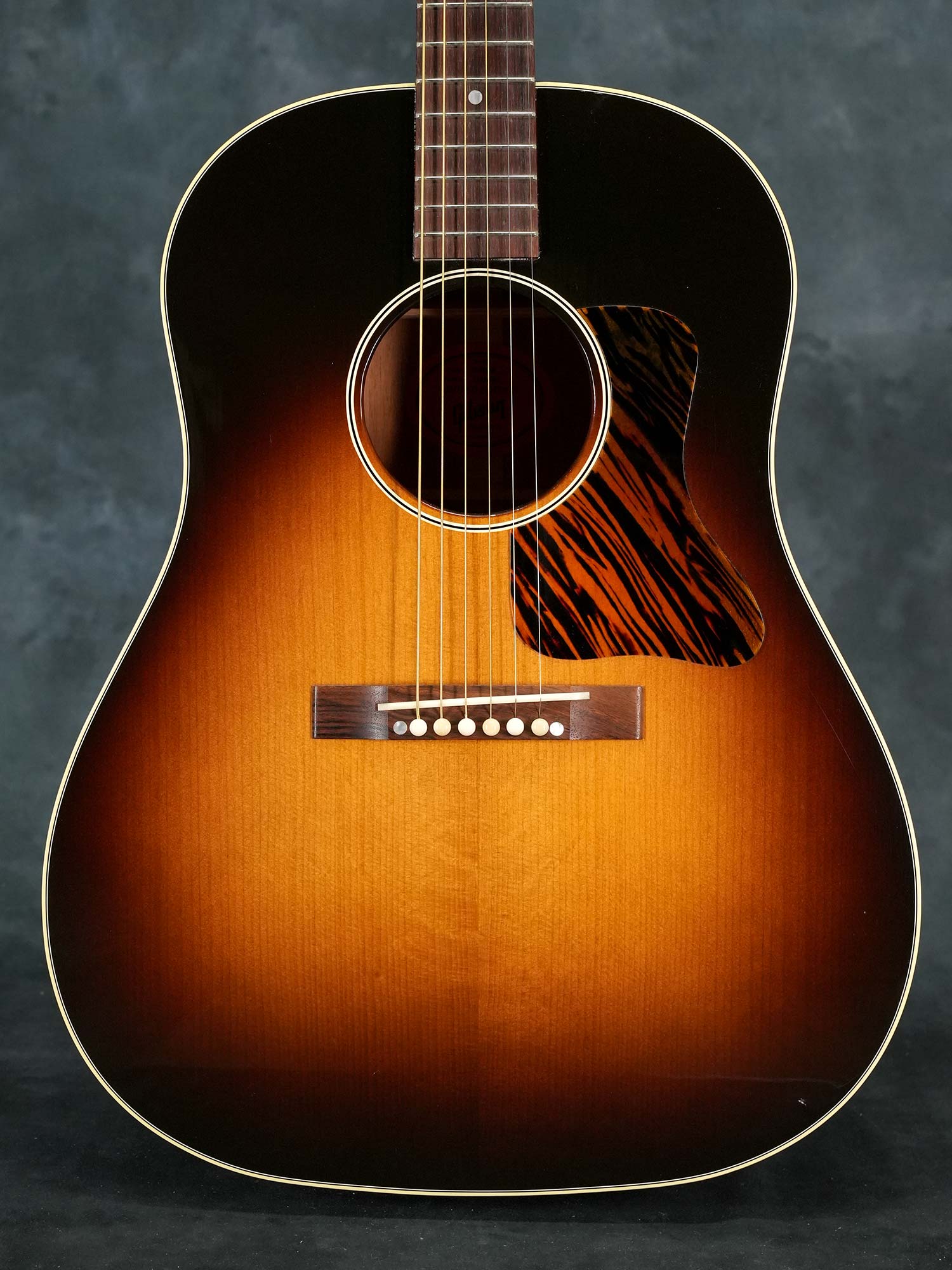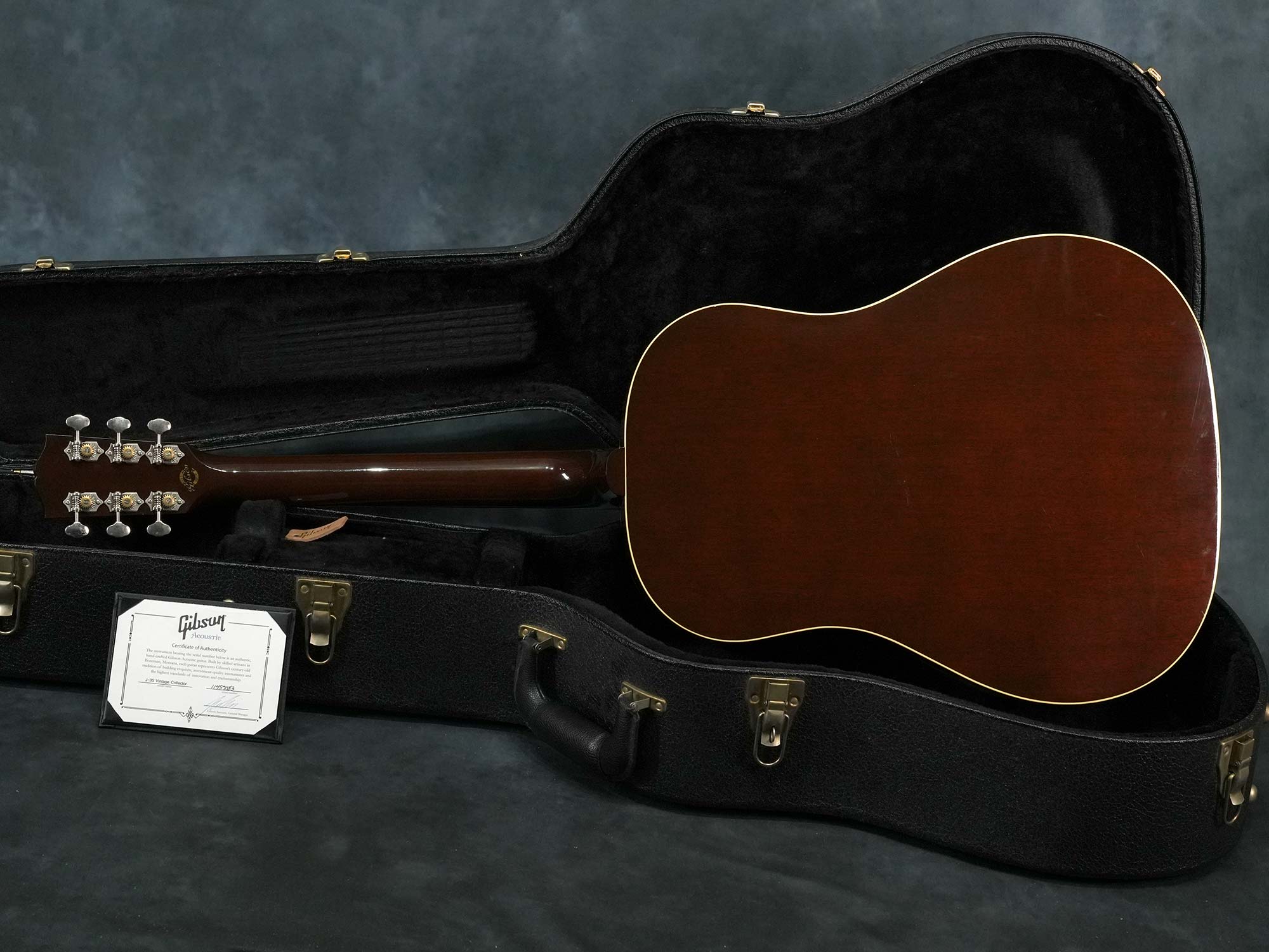 Gibsonアコースティックギターの大定番モデル「J-45」の前身として1936年~1943年まで製造されたオリジナル「J-35」を再現してマンスリーリミテッドモデルとして2017年当時に限定発売されたモデルで、レクタングルブリッジや特徴的なピックガードの形状など現行のレギュラーモデルとは異なるクラシックなデザインが特徴です。