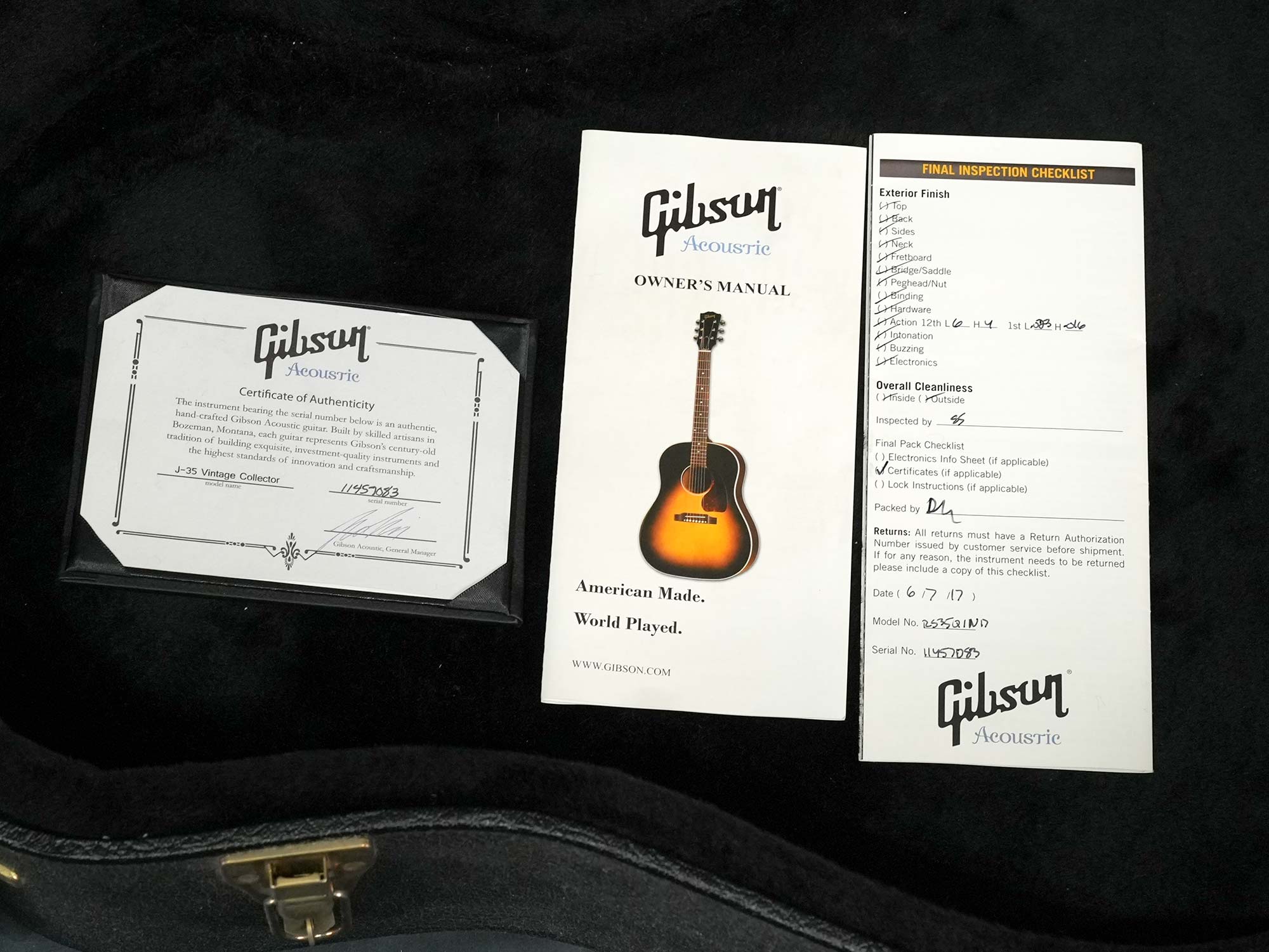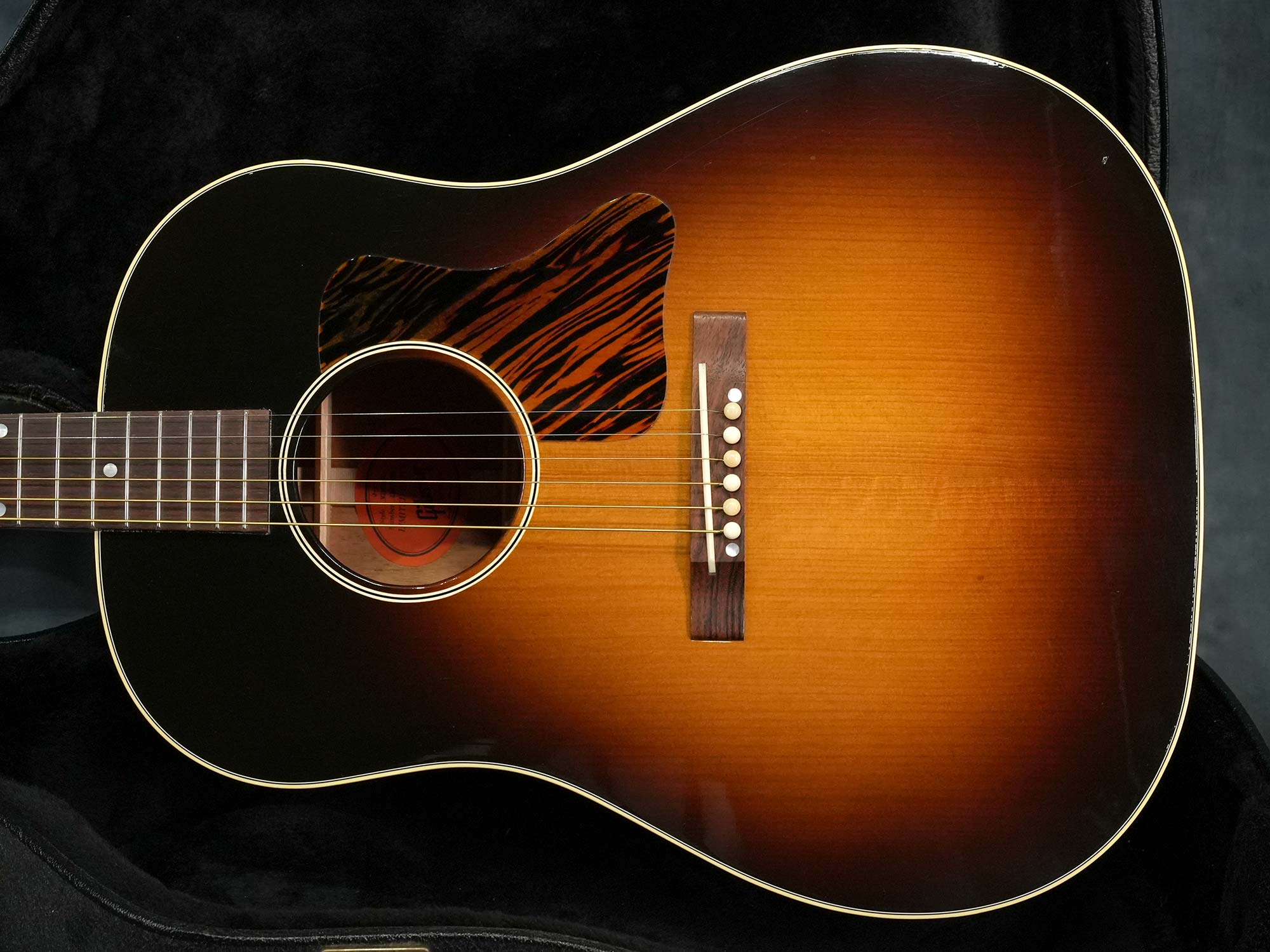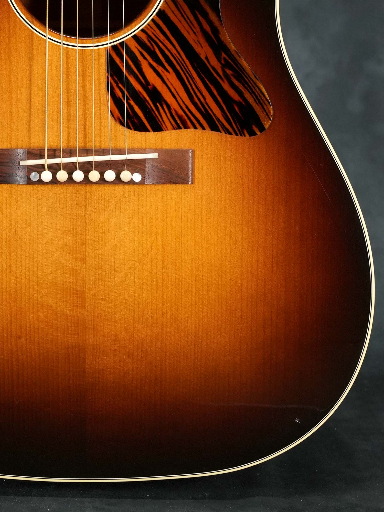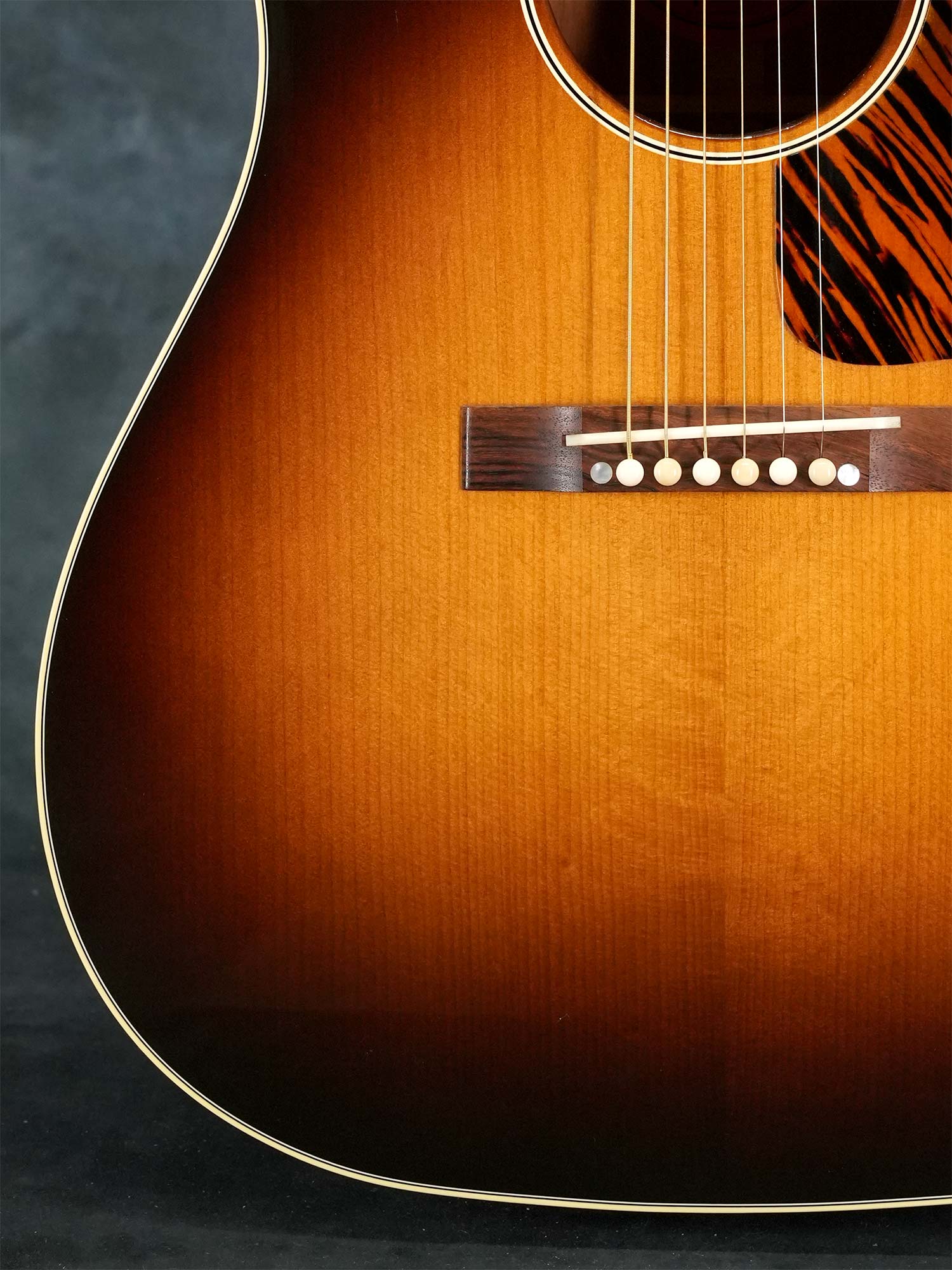 Gibsonアコースティックギターの大定番モデル「J-45」の前身として1936年~1943年まで製造されたオリジナル「J-35」を再現してマンスリーリミテッドモデルとして2017年当時に限定発売されたモデルで、レクタングルブリッジや特徴的なピックガードの形状など現行のレギュラーモデルとは異なるクラシックなデザインが特徴です。