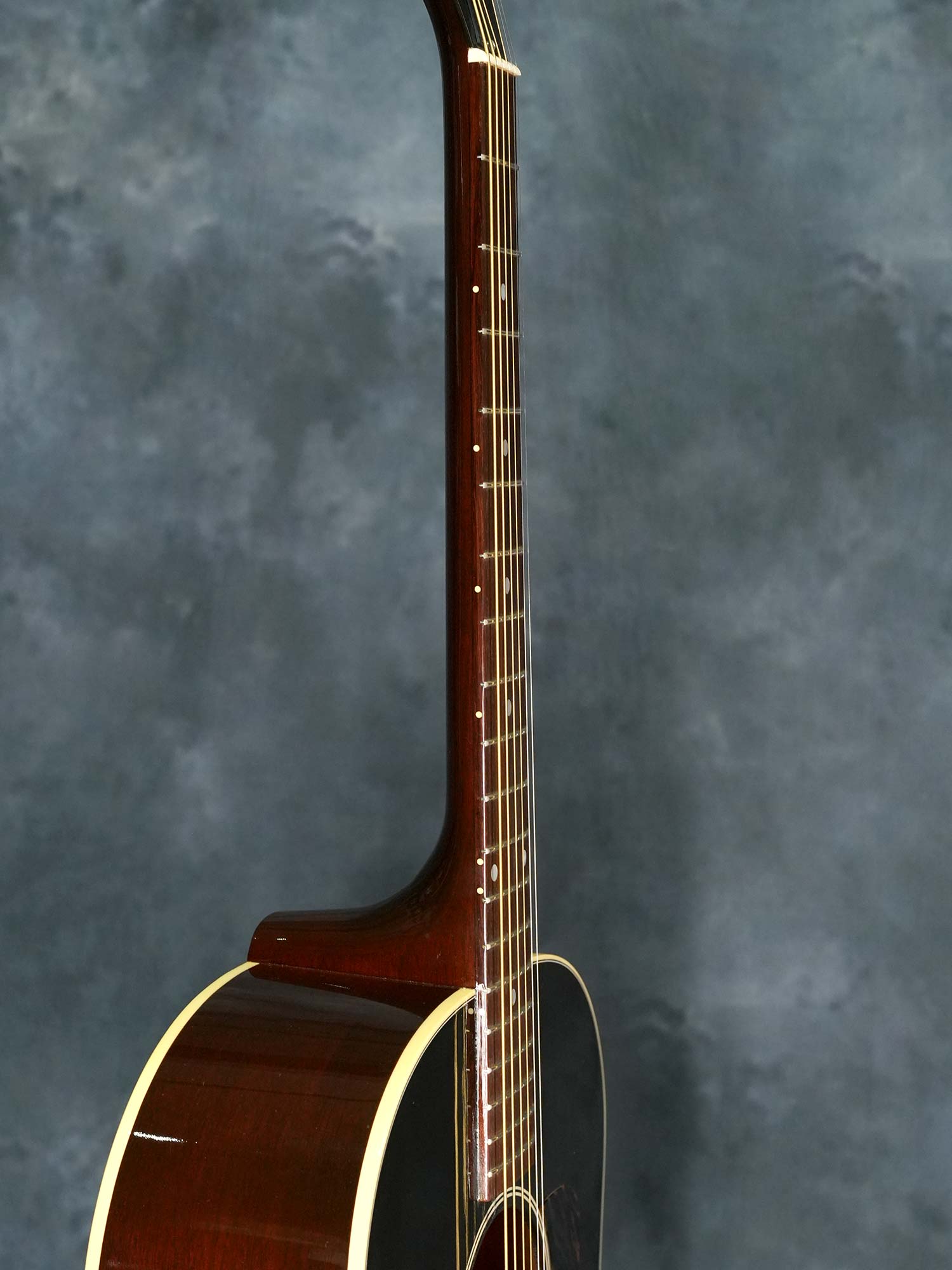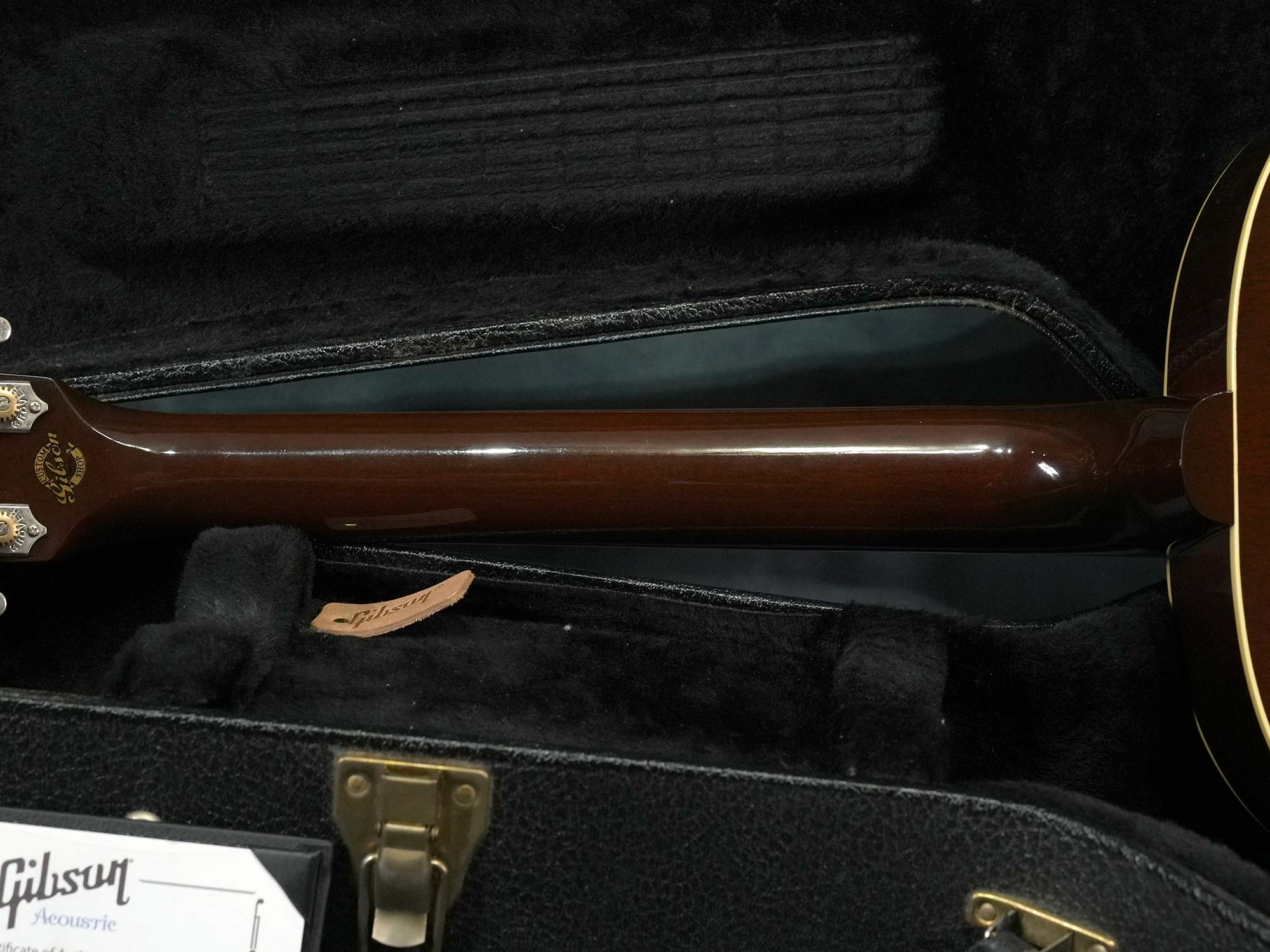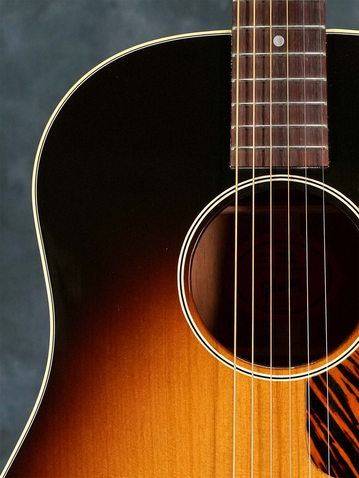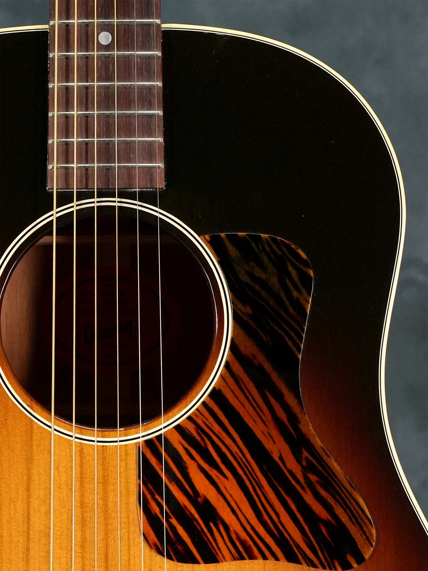 サーマリーエイジドされたアディロンダックスプルースTopによる反応が良く大きな鳴りに加えてGibsonらしいハギレの良さが心地よく、フィンガーピッキングでもフラットピックのストロークでもしっかり使える上質なラウンドショルダーをお探しの方にオススメの一本です。