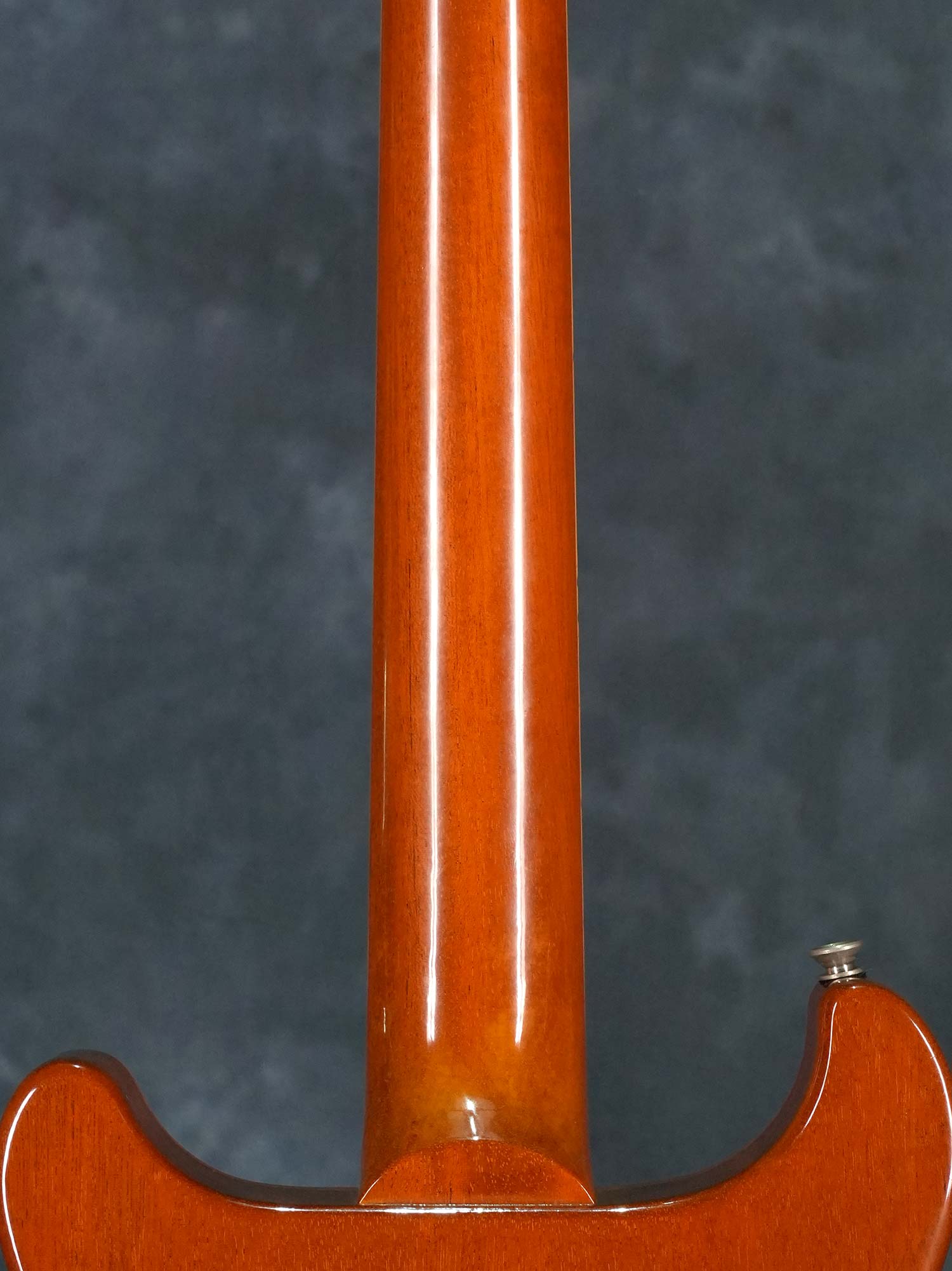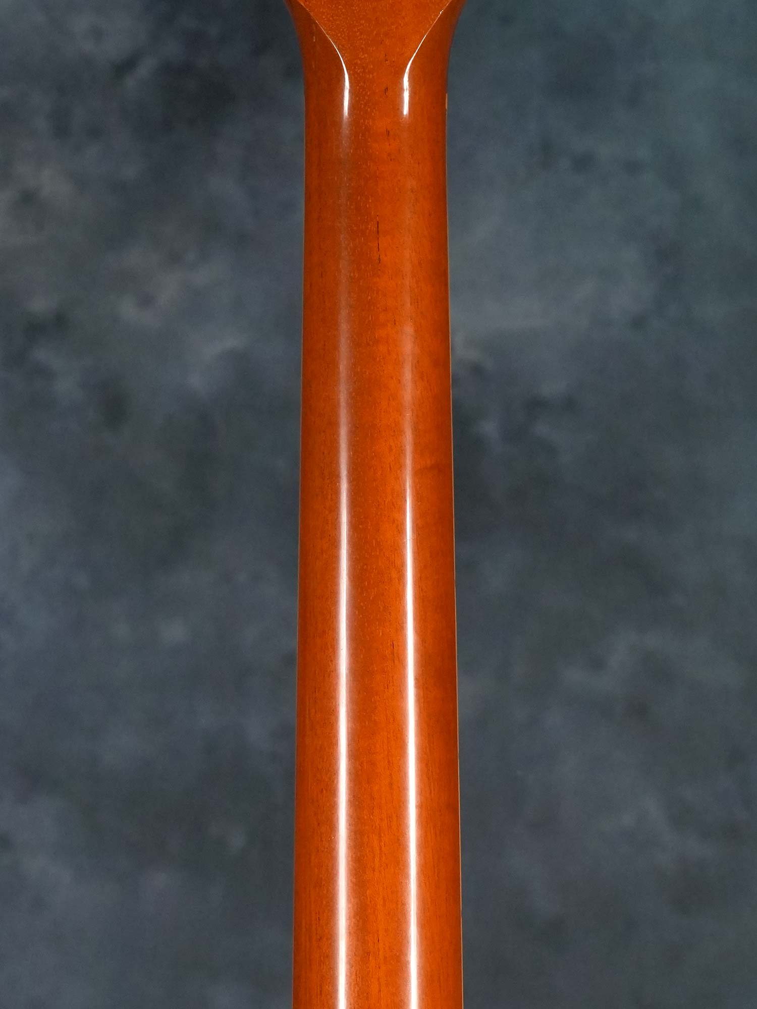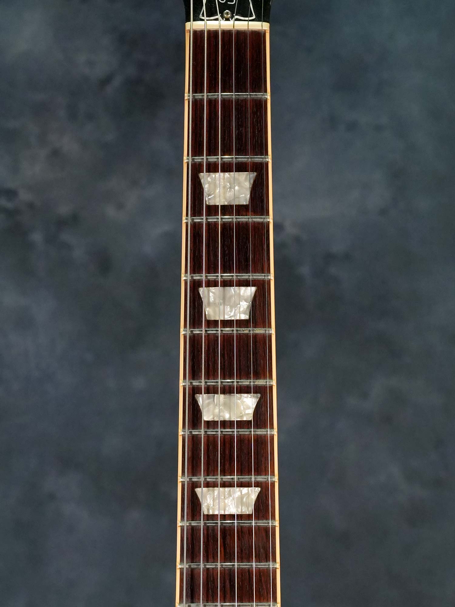 トラスロッドが締めこまれておりやや硬くなっておりますがネックはほぼストレートのちょうど良い状態で、フレットは高音弦側を中心に僅かに減っているものの最も低い箇所でも8割以上残っており、気になるようなビビりや音詰まりは無く演奏性は良好です。
