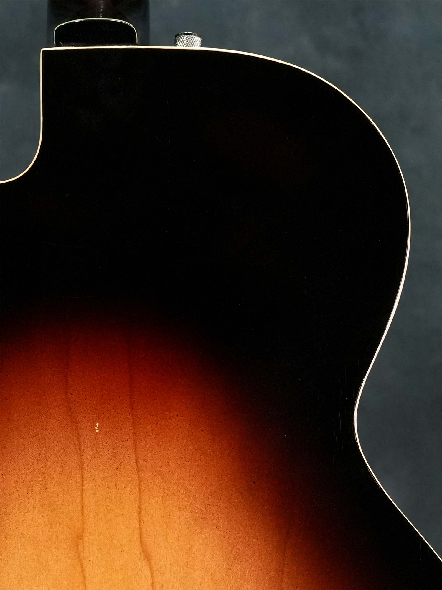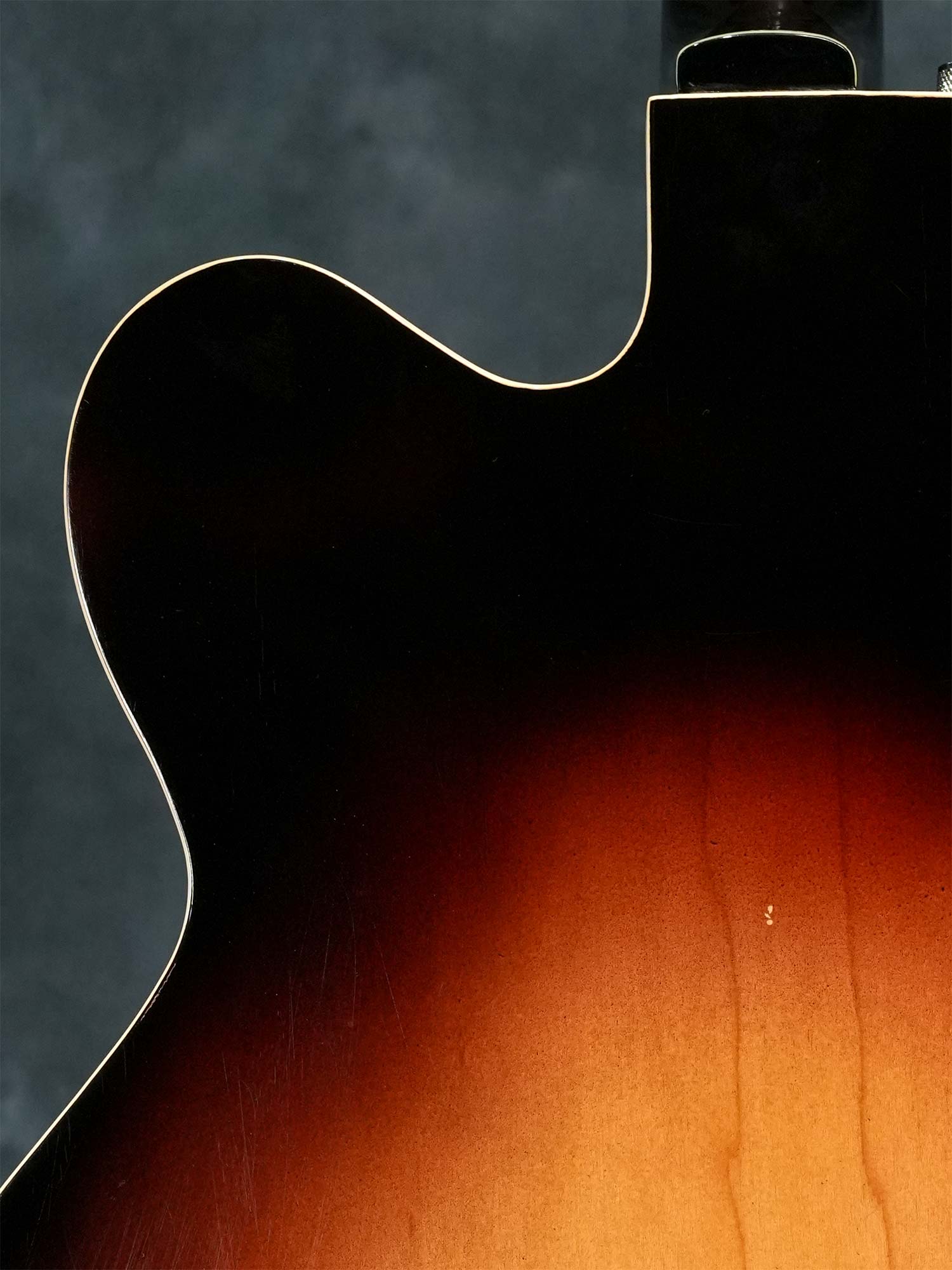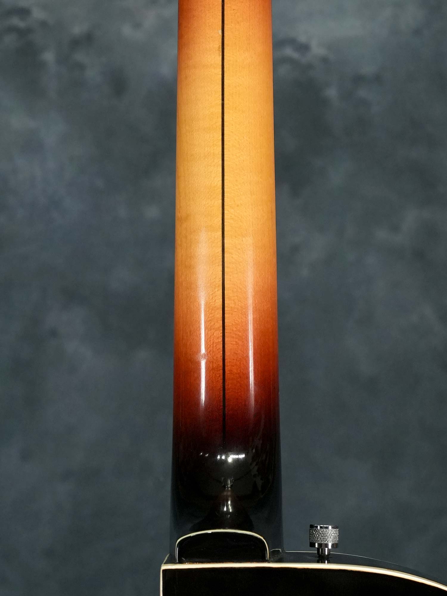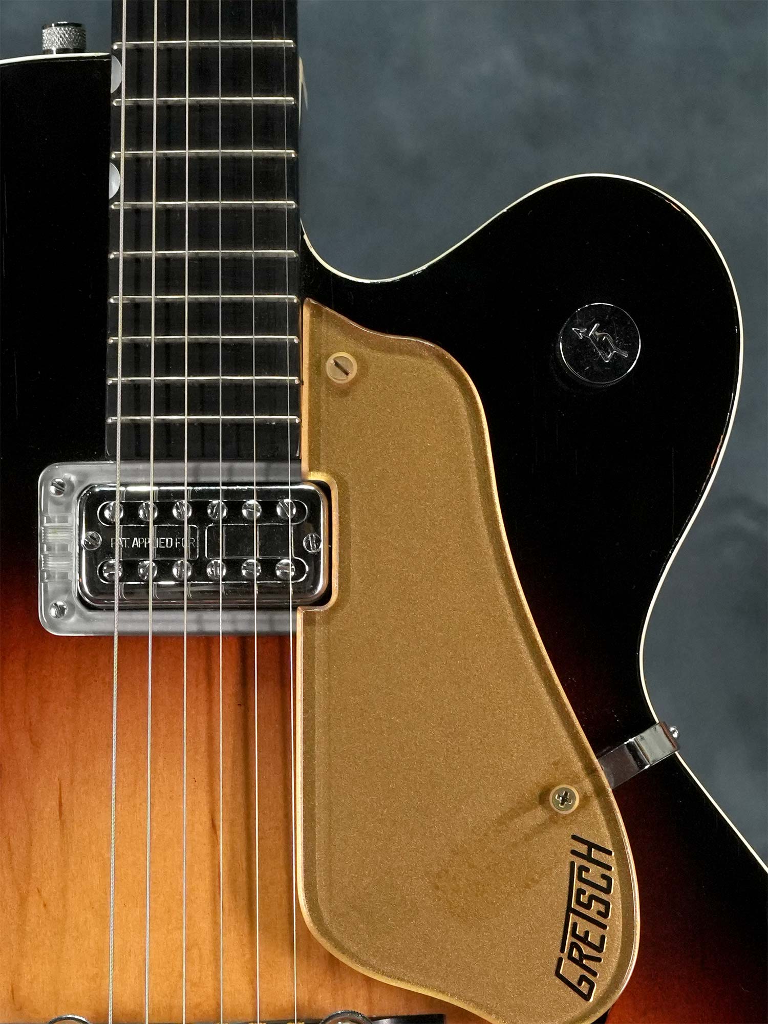 Gretsch社の135周年を記念して1958年に発売されたアニヴァーサリーモデル。一般的に「記念モデル」では数量や製造年が限定されている事が多いものの、仕様を変えながら1958年~1971年まで約23年に渡って製造されていたロングセラーモデルで、ピックアップの数やカラーヴァリエーションなど複数のモデルが有る中で、本器は1958年の発売から1959年までの約2年程と短い期間のみ製造された「”PAF”フィルタートロン・ピックアップ」搭載の1959年製 Gretsch 6124 Single Anniversary です。ラミネイトメイプルのフルアコースティックボディに、ナット幅42.7mmかつやや薄身なメイプルネック、サムネイルインレイの入ったエボニー指板、Gテイルピース、弦間を自由に設定可能なスペースコントローラーブリッジ、ピックアップはPATTENT APPLIED FOR(特許出願中)刻印の入った通称”PAF”フィルタートロン・ハムバッカーを搭載し、3-WayのトーンセレクターにVolumeのみのシンプルなコントロール。