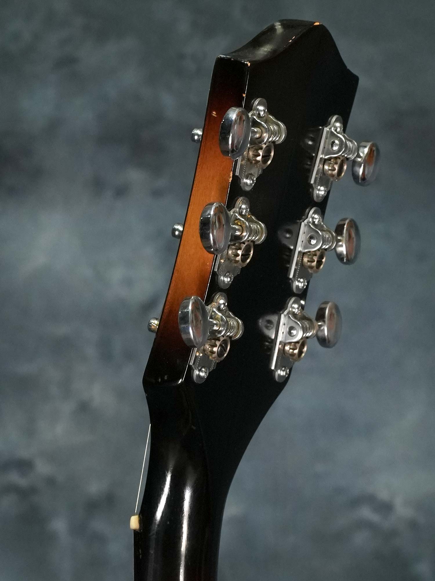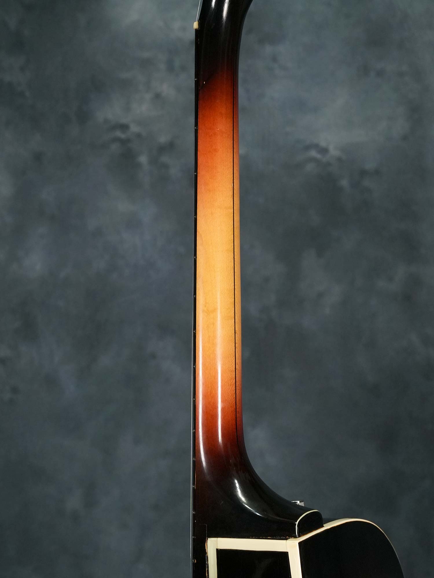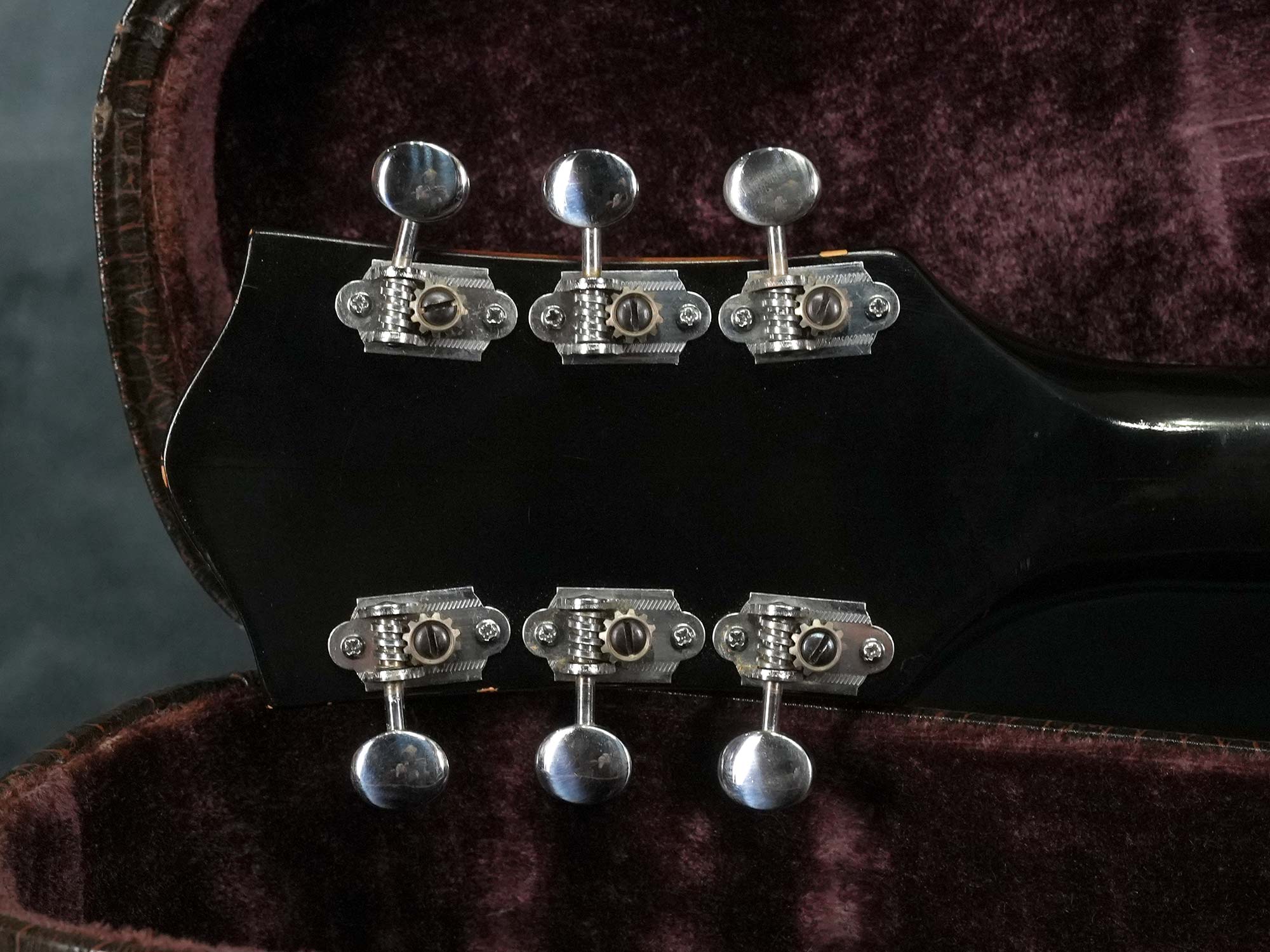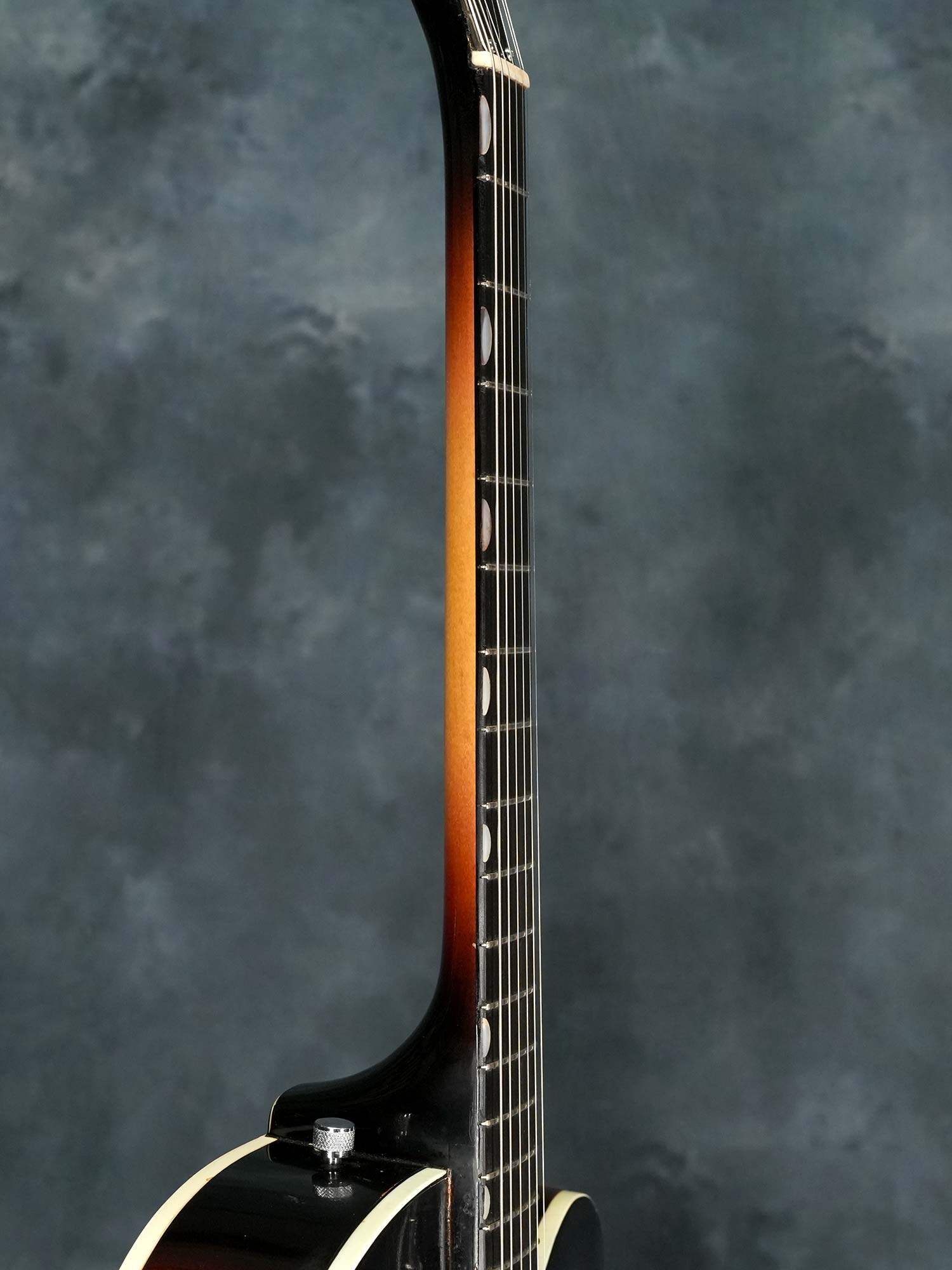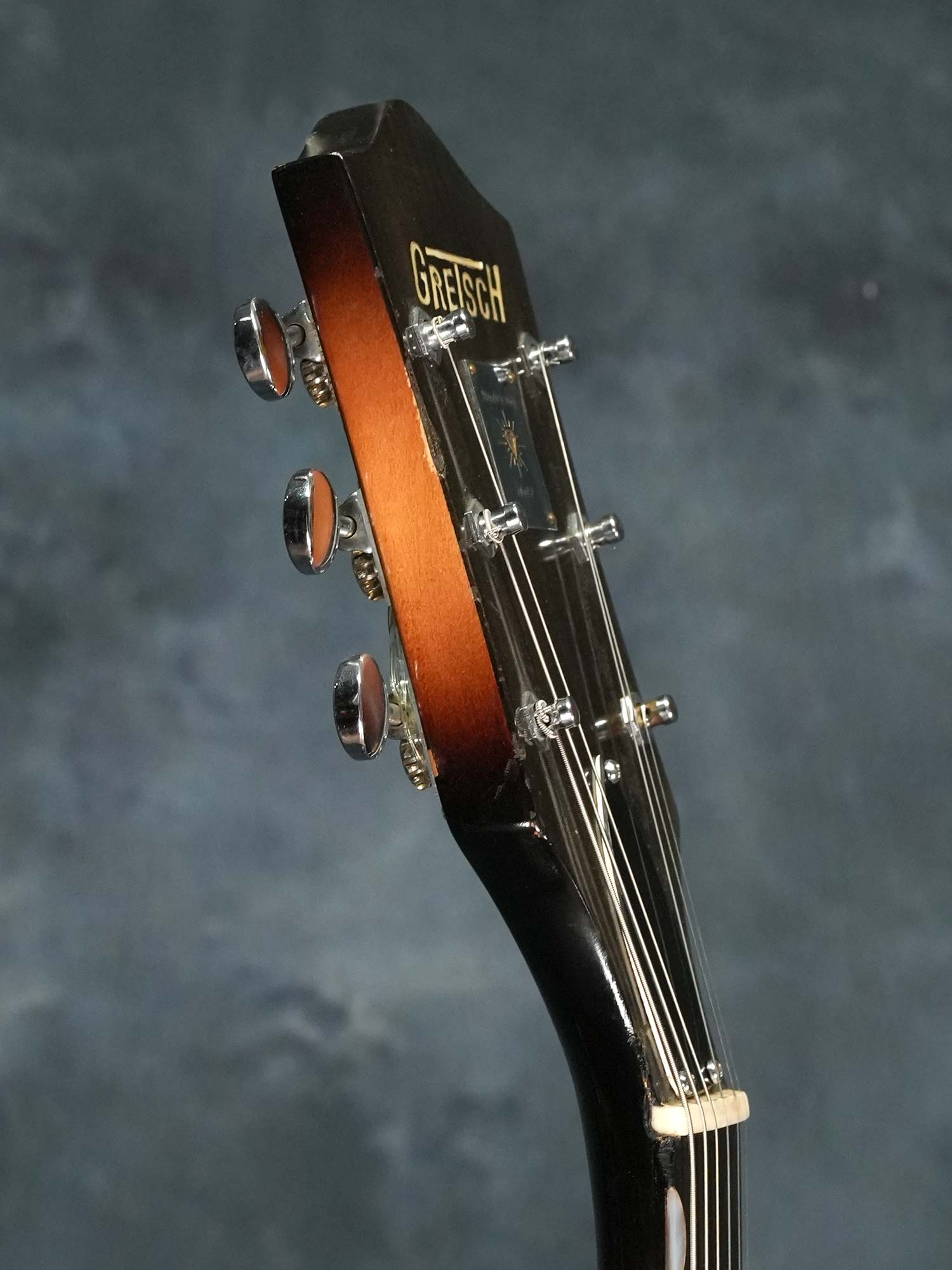 ネックはほぼストレートの丁度良い状態でトラスロッドの効きも良好、ネックジョイントにトラブルが起きやすいGretschですがジョイントの浮きや元起きも無くサドルの調整範囲内で適正な弦高、オリジナルと思われる細身で低いフレットはすり合わせにより全体的に高さの残りは少ないものの、気になるようなビビりや音詰まりも無く演奏性は良好です。