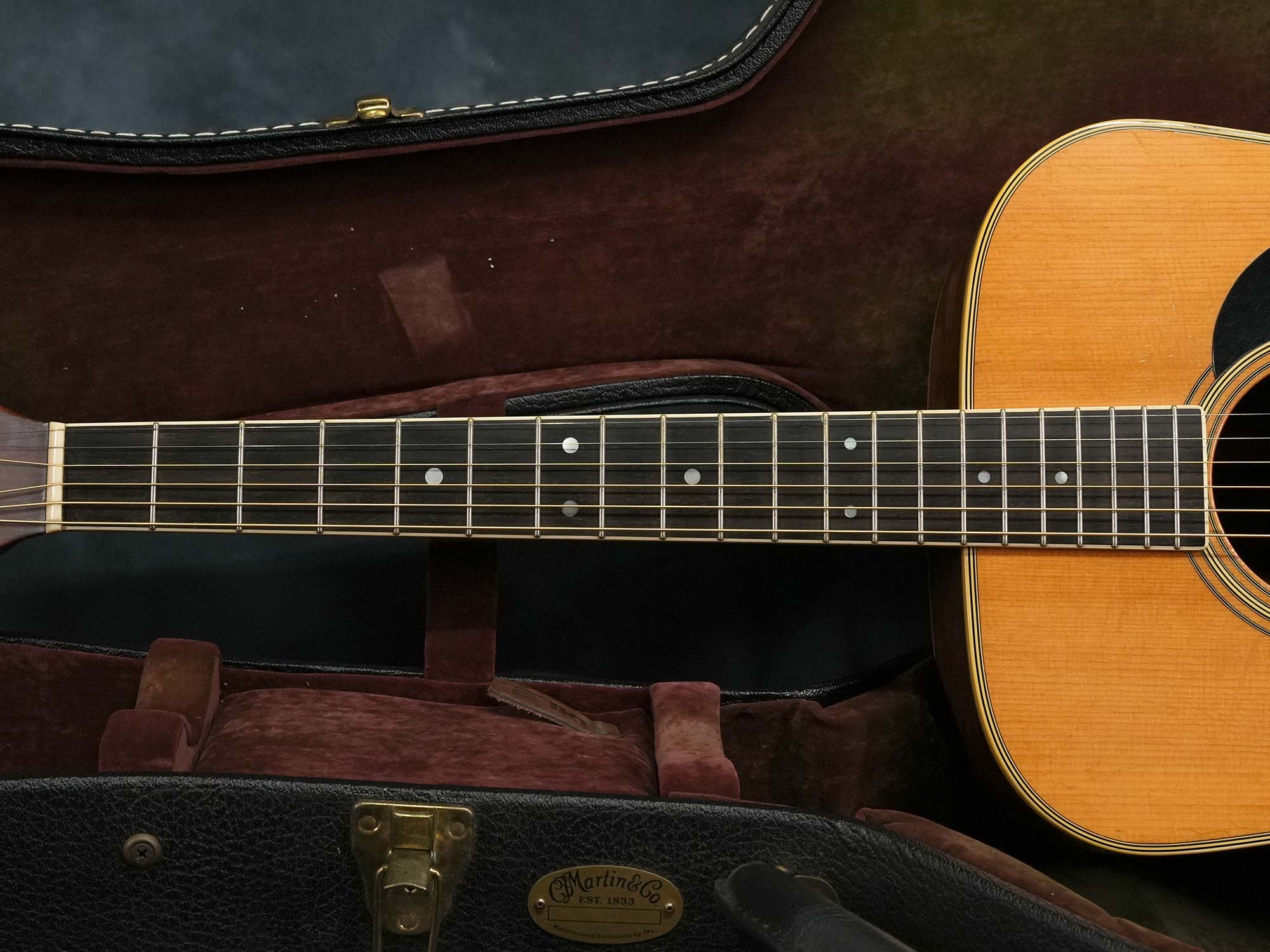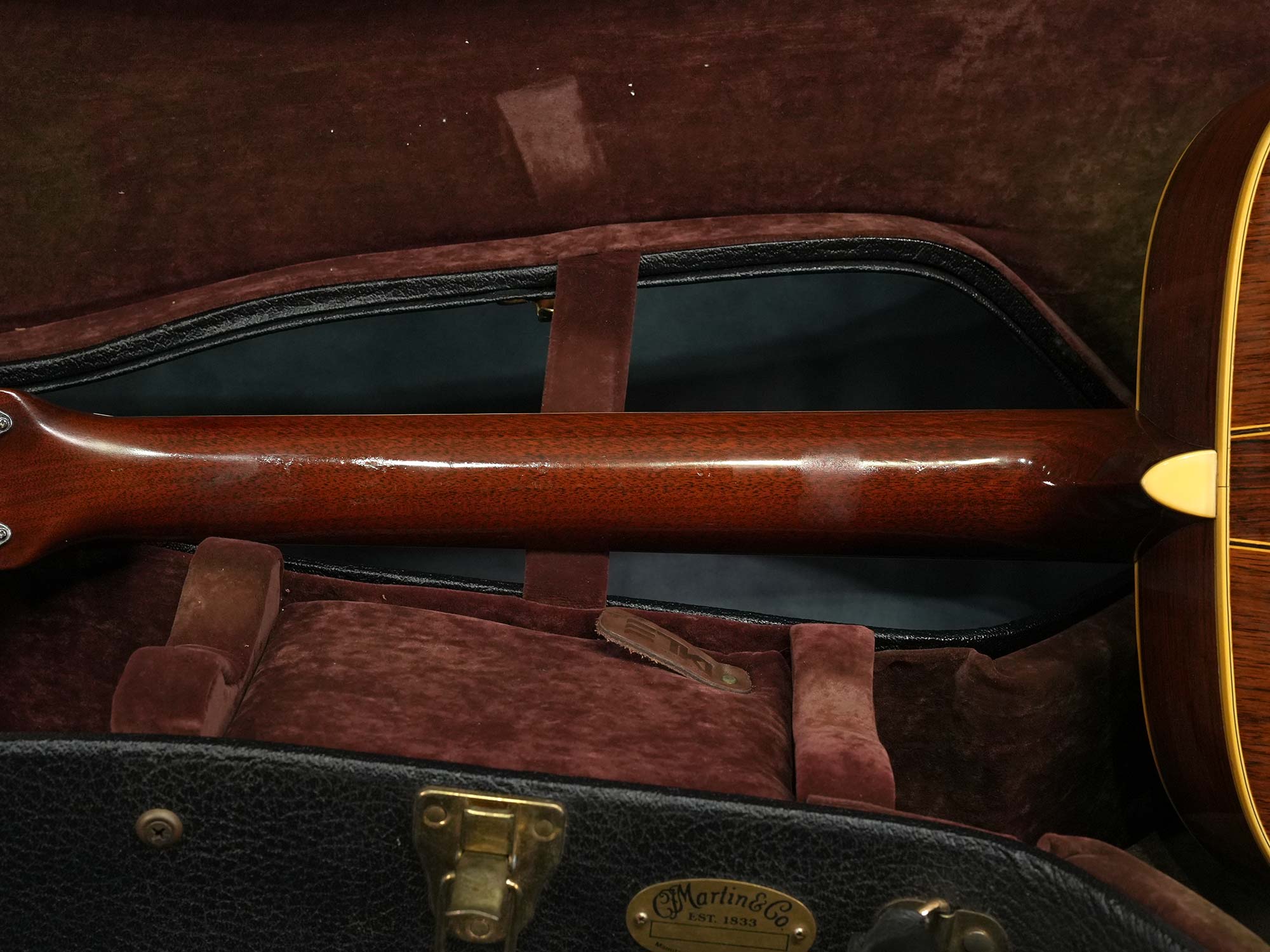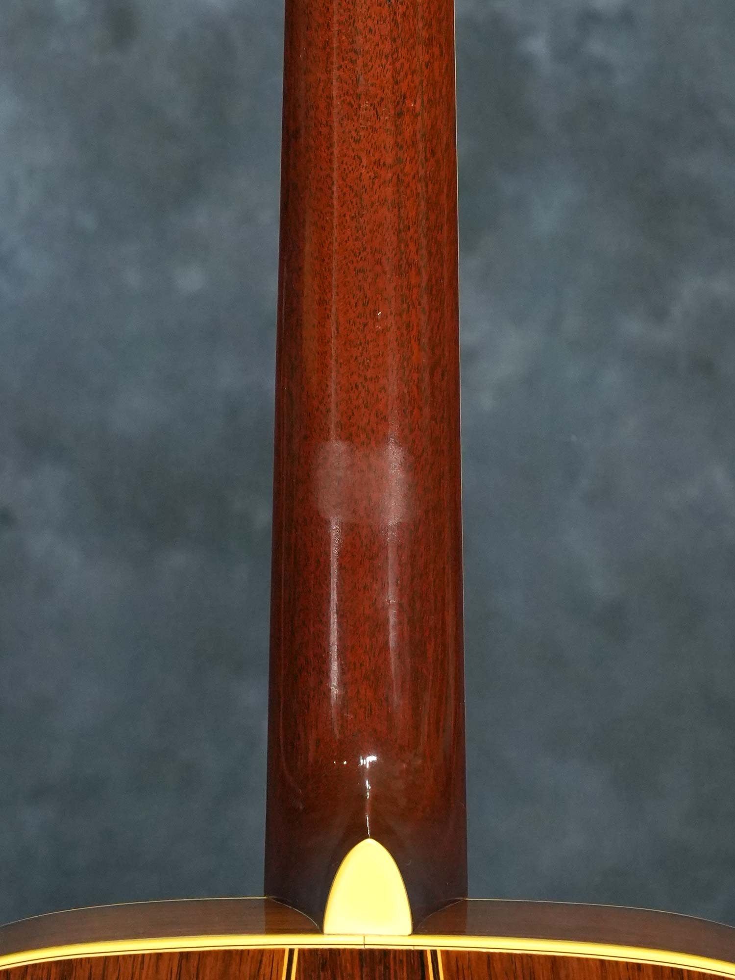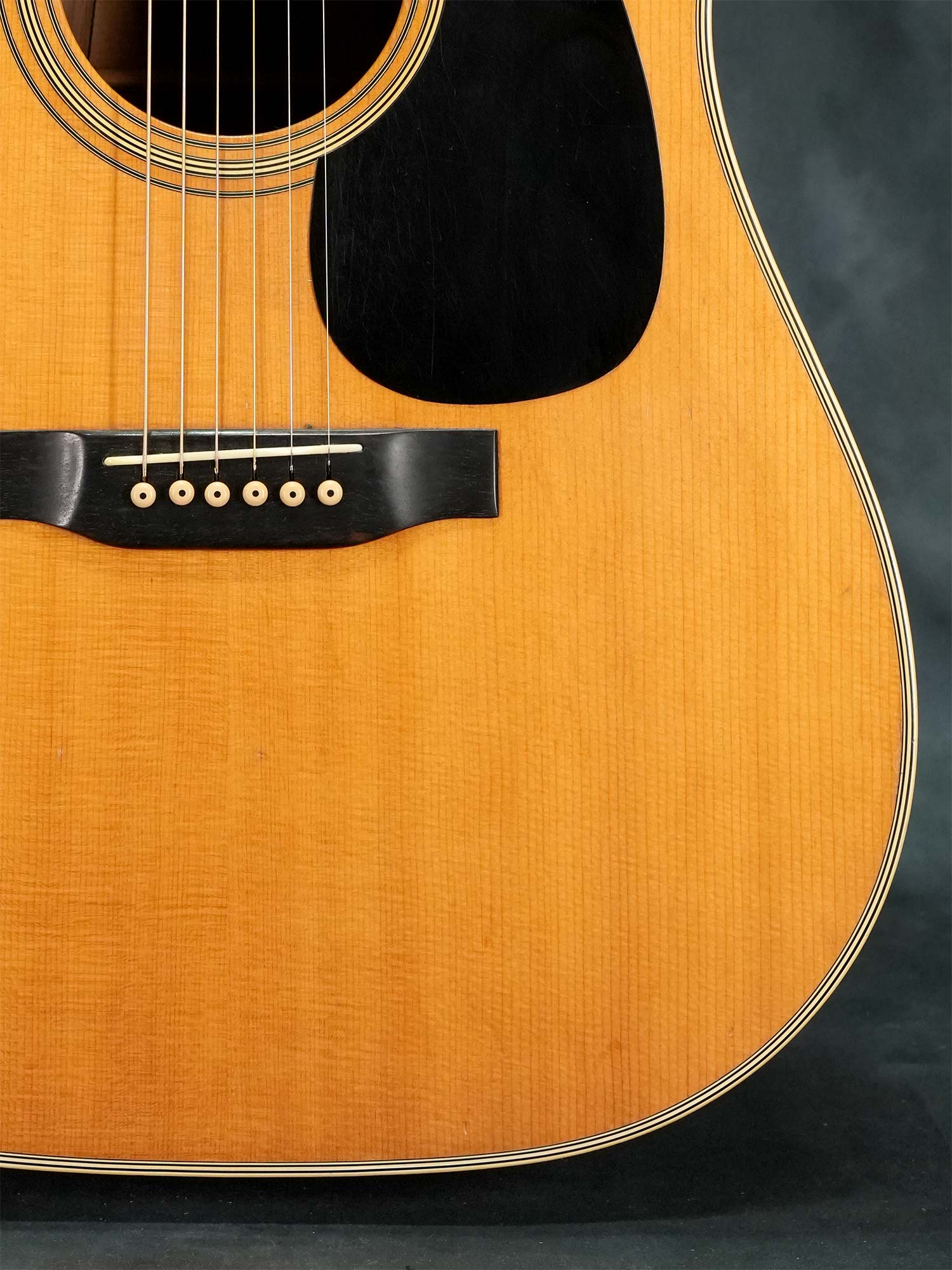 リアシフトしたノンスキャロップブレーシングにローズウッド(ハカランダ)の大きなブリッジプレートを採用する事で重めな音色になりがちな年代ながら、軽く弾いてもしっかり反応するレスポンスの良さとハカランダならではの抜けた芯の太い鳴り、ネックリペアはあるものの良く見なければ分からないような丁寧な修理がされており、心地よい響きでしっかり使えるハカランダのD-35をお探しの方にオススメの1本です。