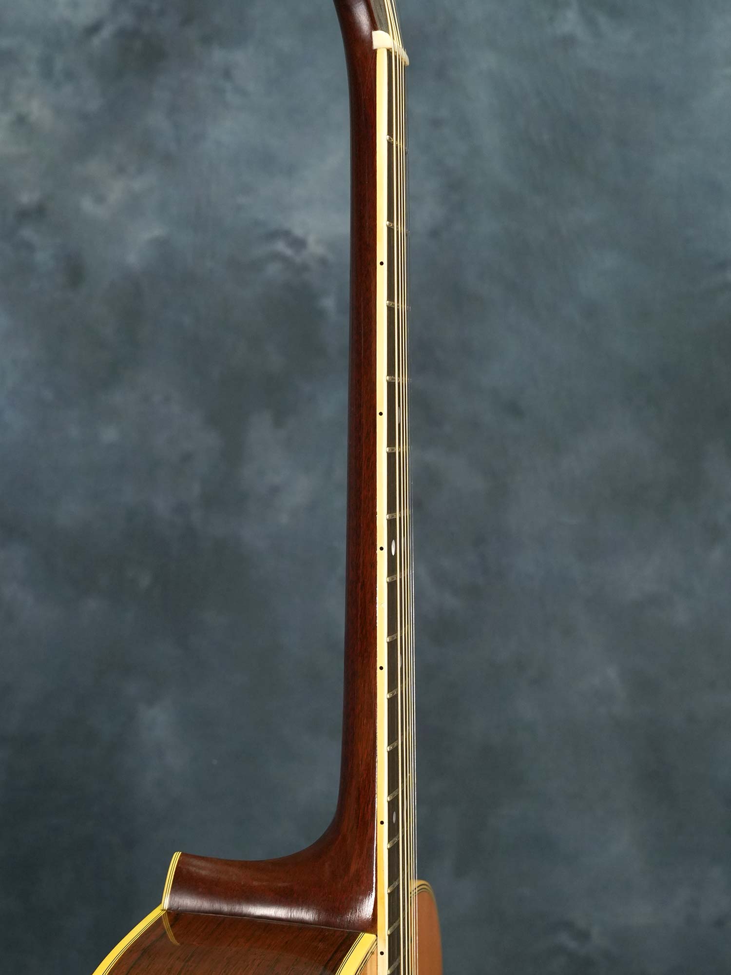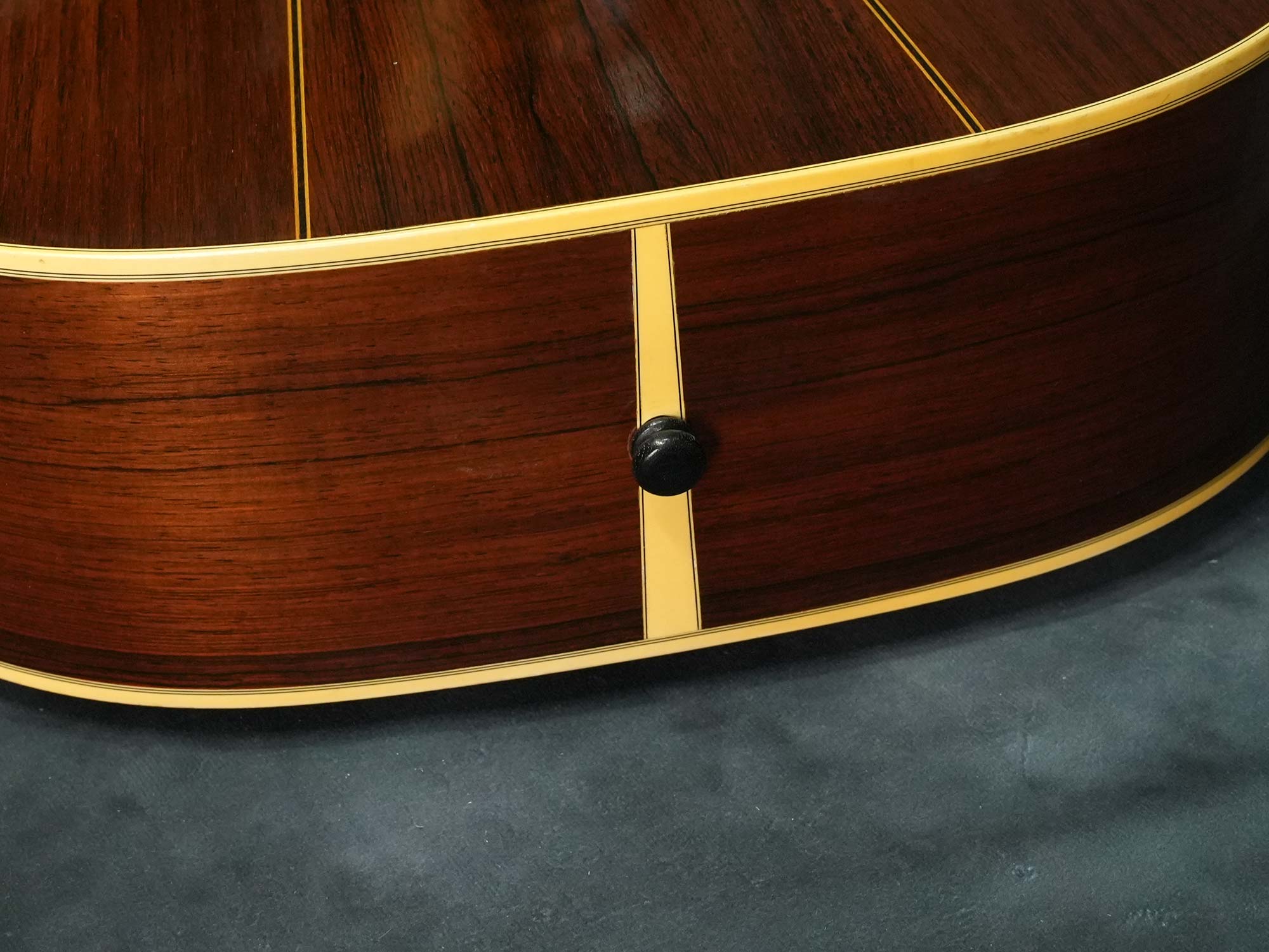 スプルースTop&ハカランダSide/Back(3-Piece)のドレッドノートボディ、マホガニーネック、エボニー指板&エボニーブリッジ、Gorverペグ、ヘッドストックの突板にもハカランダが使われています。