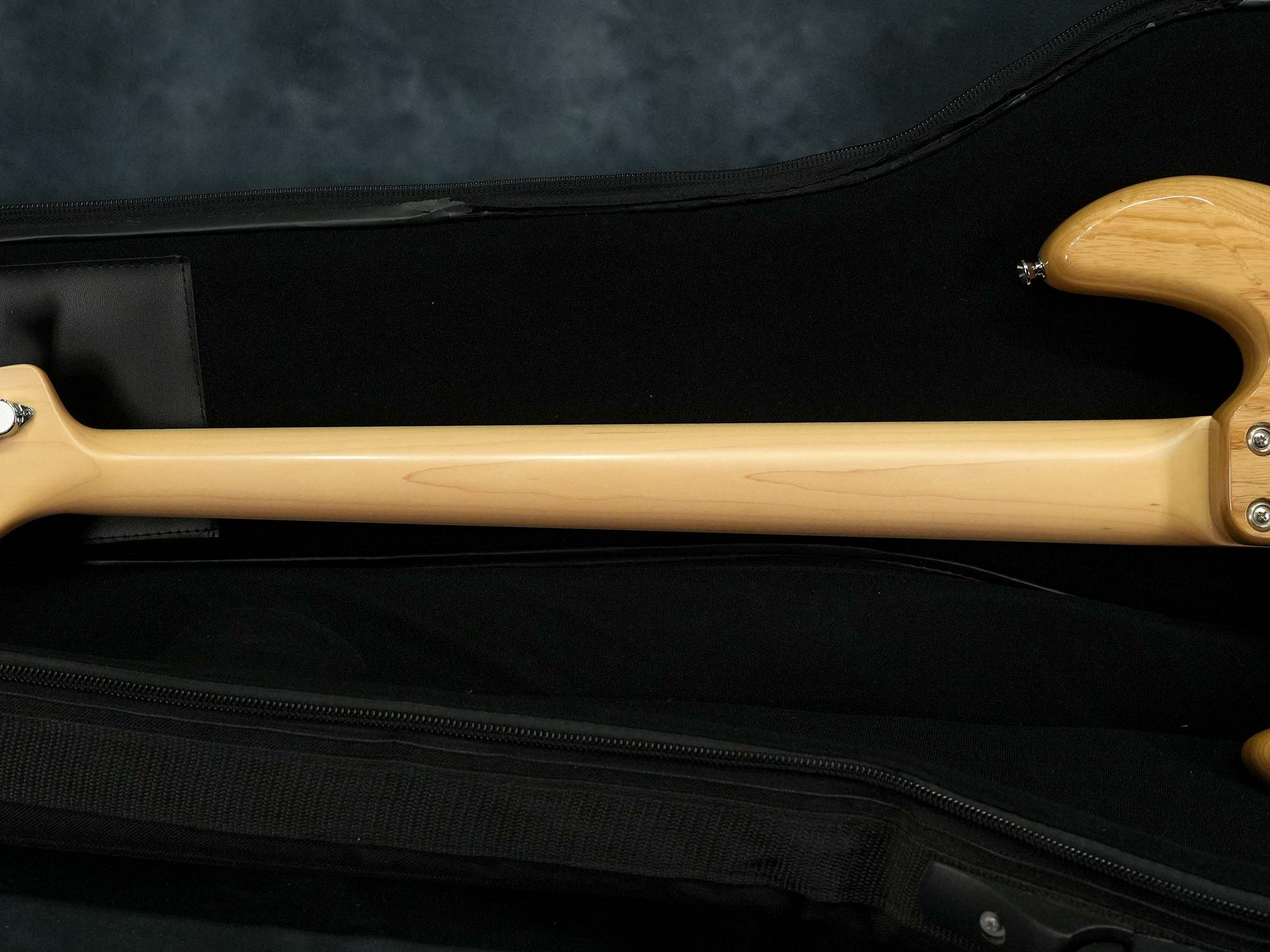 ピックガードが欠品しており、ヘッド裏側の頂点に米粒大程度の打痕、ボディにも所々弾き傷や擦り傷と言った使用感はありますが、極端に大きなダメージは無く年式を考えればとても綺麗な状態を保っており、バックパネルの保護フィルムも剥がされておりません。