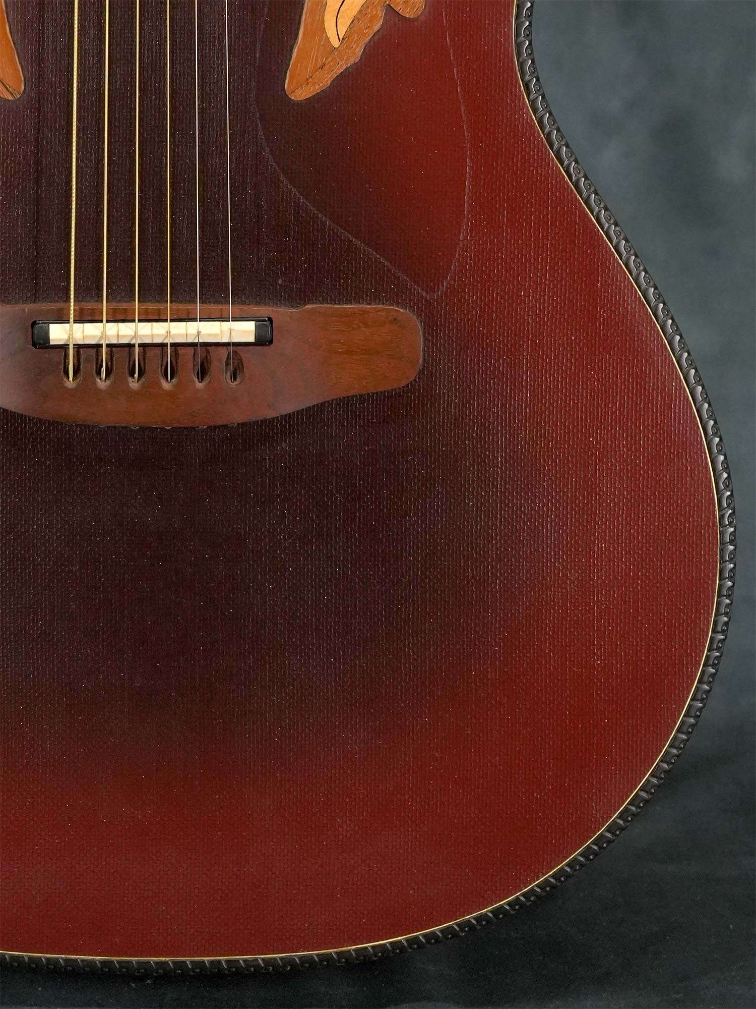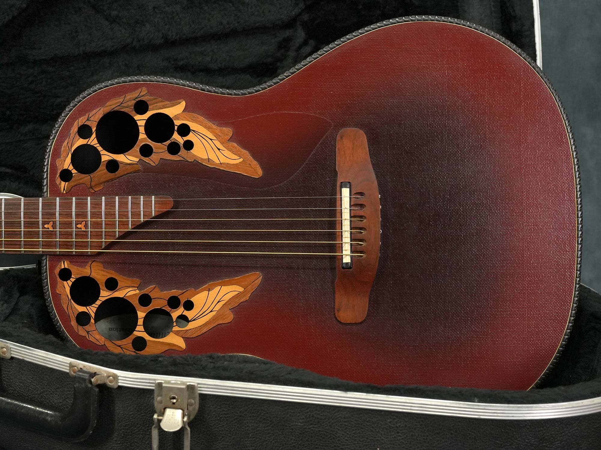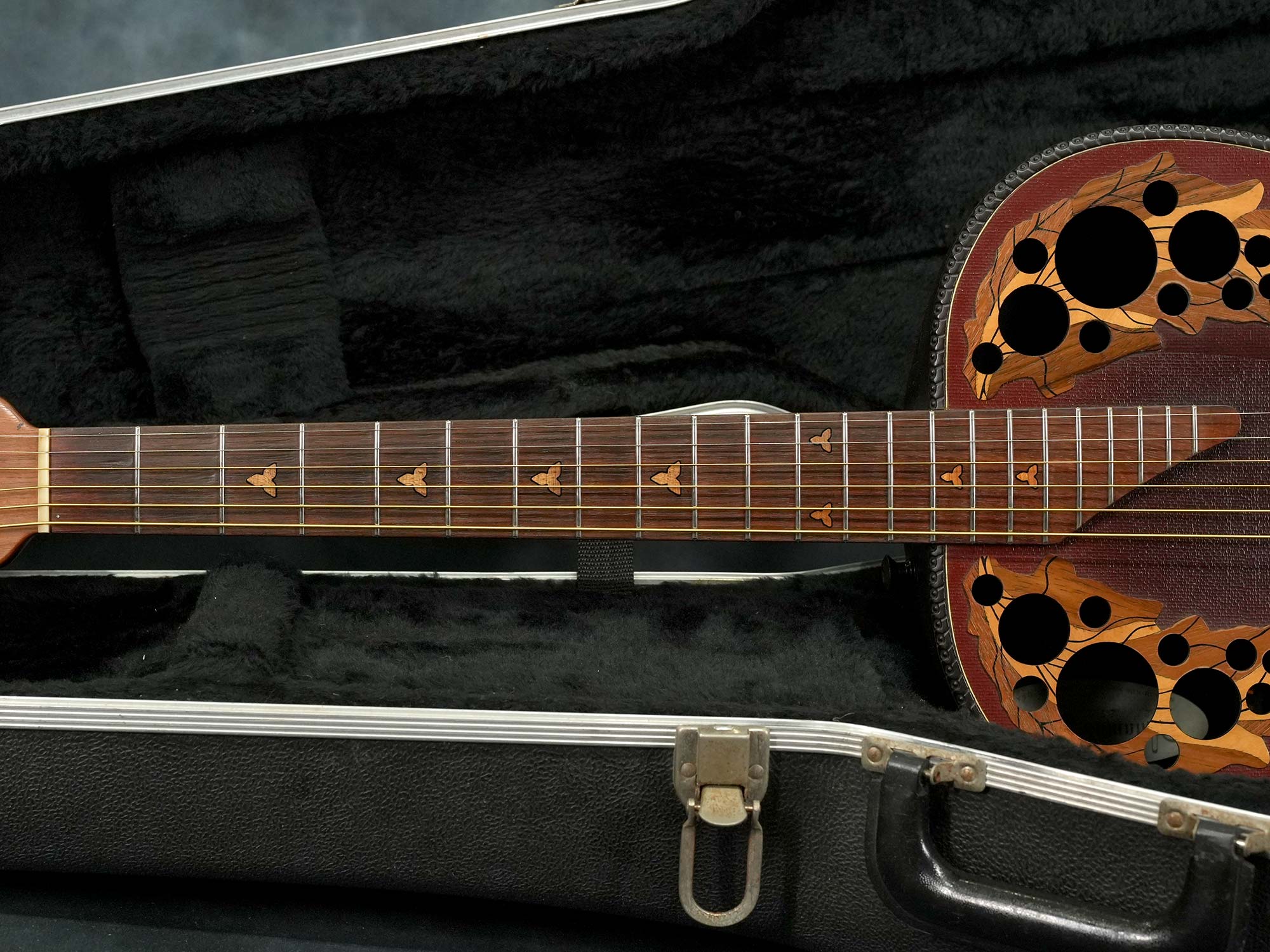 ネックはほぼストレートの丁度良い状態で、Ovationにありがちなジョイント付近のトラブル等も有りません。フレットは高音弦側のローポジションが僅かに減っている程度で大きな凹みは無く、気になるようなビビりや音詰まりも無く演奏性は良好です。
