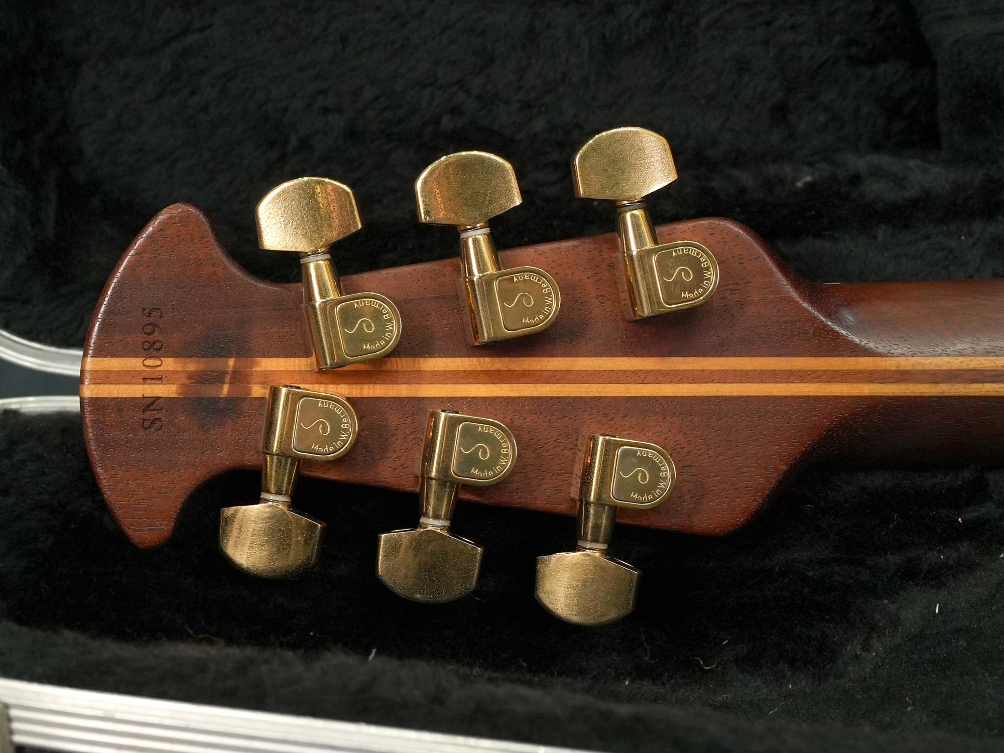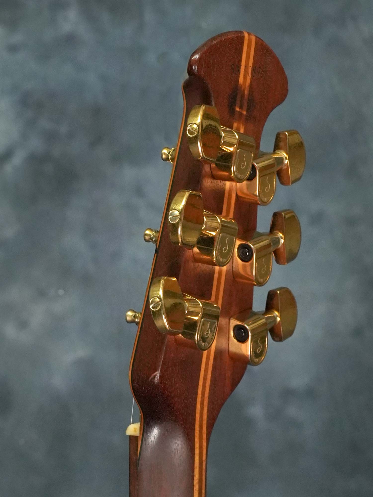 ヘッドの表/裏に木材へのシミのような汚れが有り、ネック裏に数か所ひっかいたような線状の傷がありますが、その他は極端に大きなダメージなども無く年式を考えれば比較的綺麗な状態を保っています。