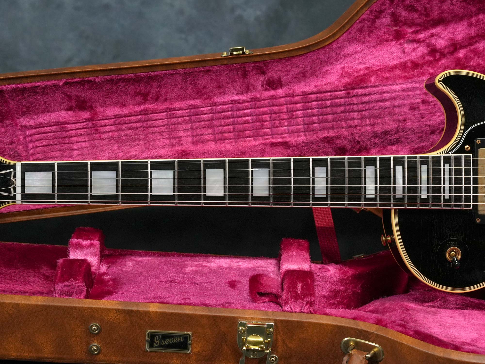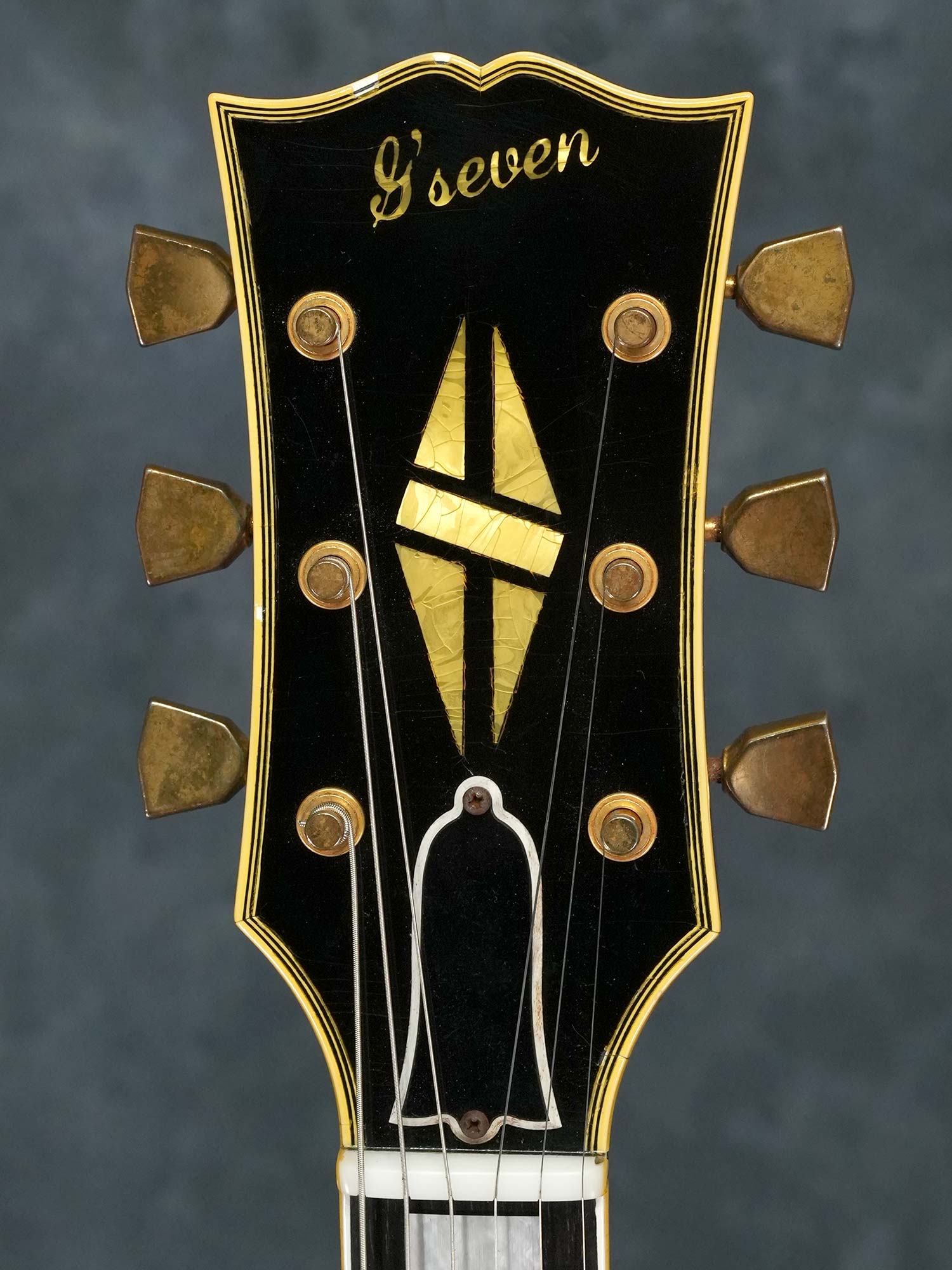 g7 Specialの作る68年スタイルのLPCモデル、雰囲気の良いエイジド加工が施されているものの殆ど使用感が無くコンディションの良い2020年製の中古品です。メイプルTop&マホガニーBackのボディに、ロングテノン(ディープジョイント)のマホガニーネック、エボニー指板、メタルノブのKluson VX501 ”ワッフルバック”ペグ、ブラス製のワイヤードABR-1ブリッジ、軽量なアルミのテールピース、ピックアップはフロント&リア共にVintage Maniacs Hysteric Pafを搭載し3-Wayトグルスイッチ+2-Volume/2-Toneのコントロール。