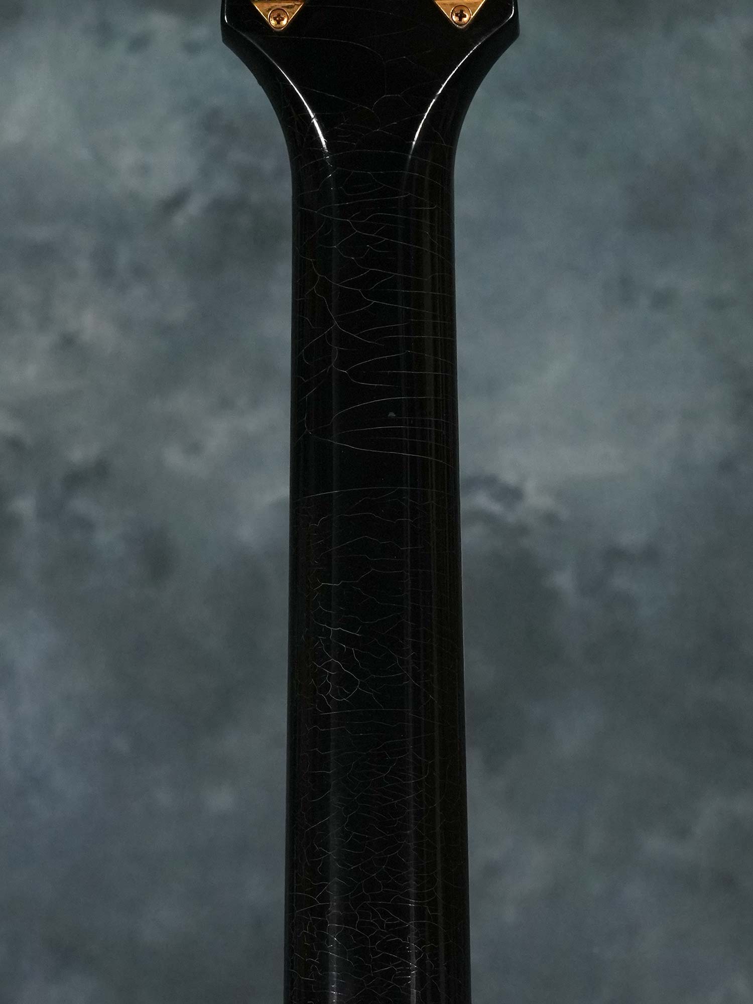 新品時よりヘッド~ネック~ボディに至るまでウェザーチェックや細かな打痕等と言った使用感が再現されたエイジド仕上げでハードウェアもしっかりエイジド加工が施されているため後から付いた傷との判別は難しいものの、違和感を感じるような大きなダメージやバックル傷なども無く、コントロールパネルの保護ビニールも貼られたままで殆ど使用感を感じられないコンディションを保っています。